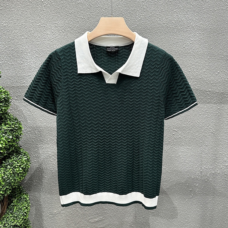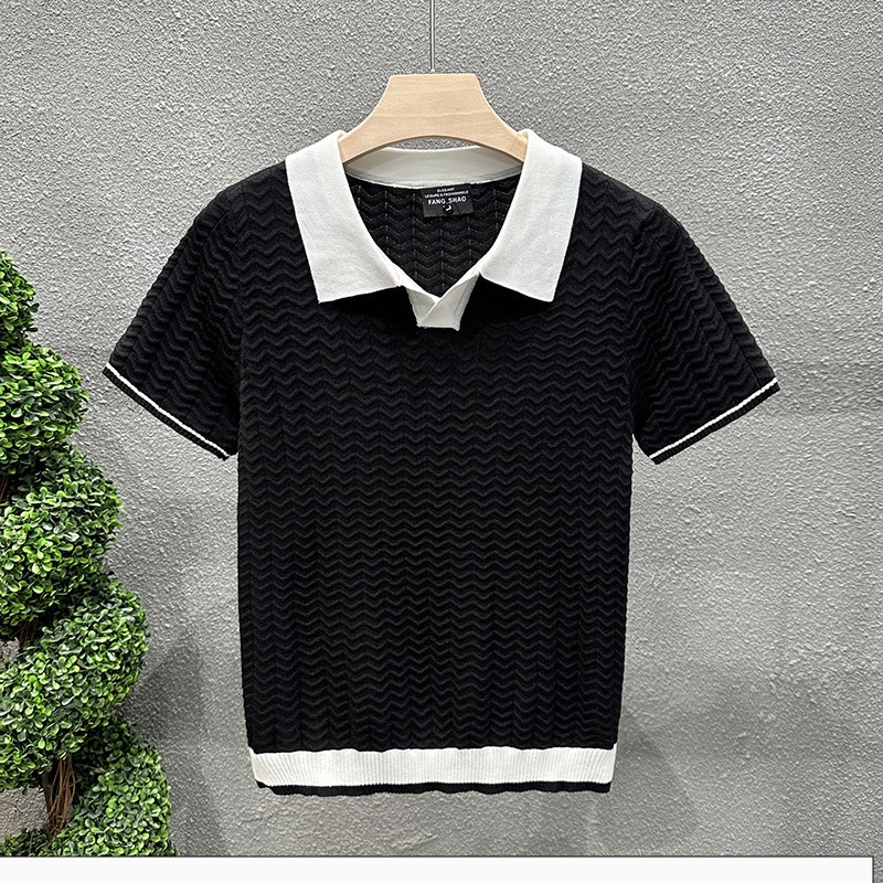 0 Review for Mens Collarless Ice Silk Contrast-Knit Sweater