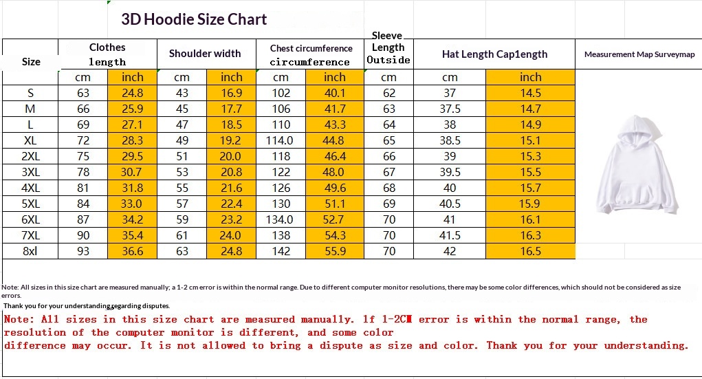 Sizes: S, M, L, XL, 2XL, 3XL, 4XL, 5XL, 6XL