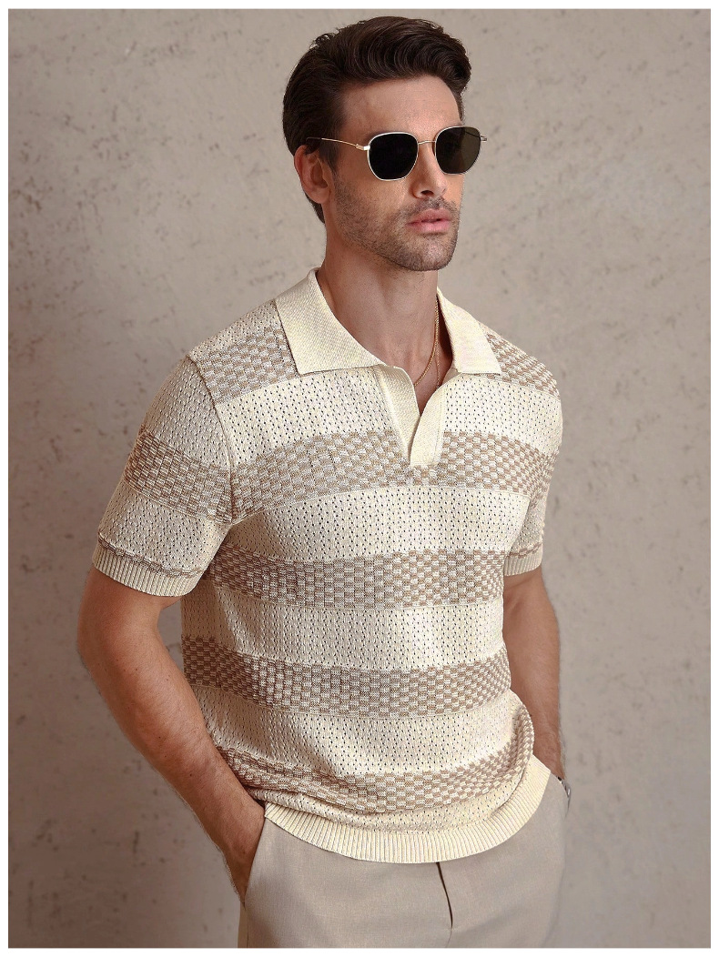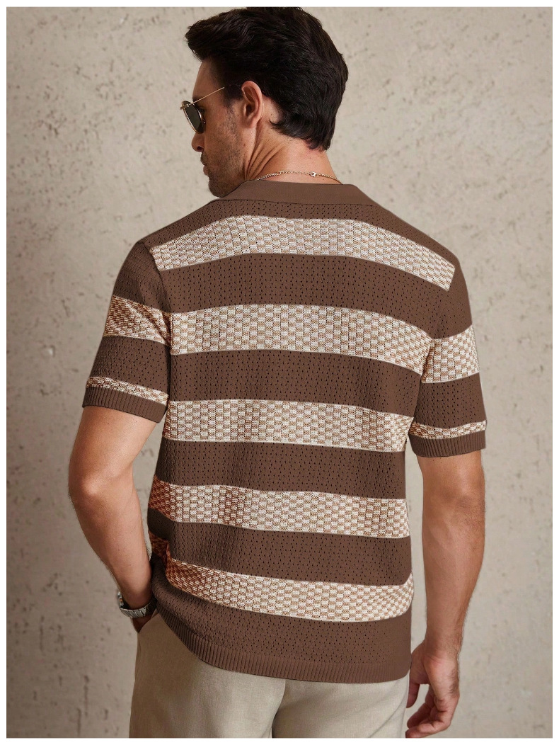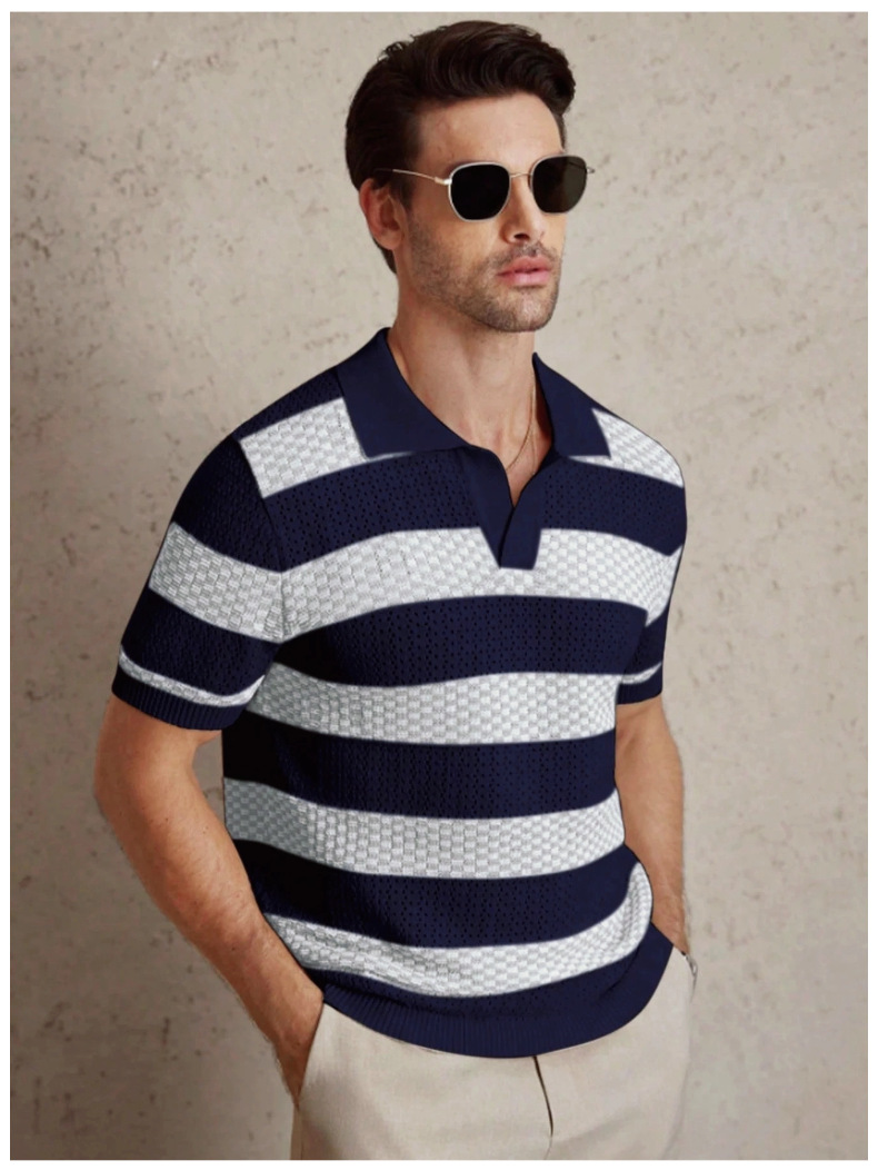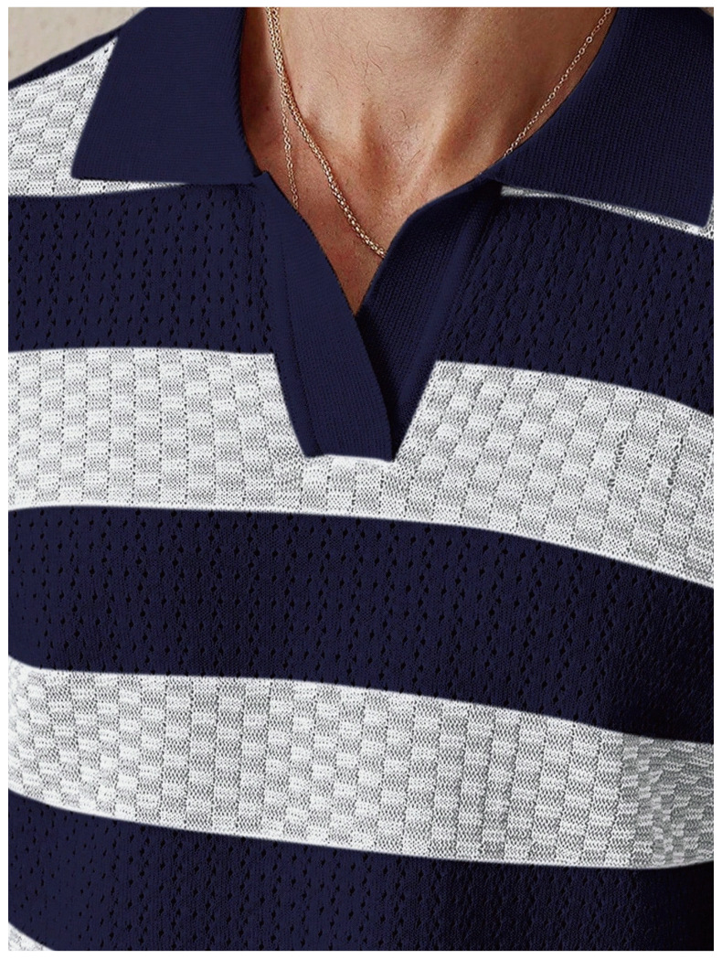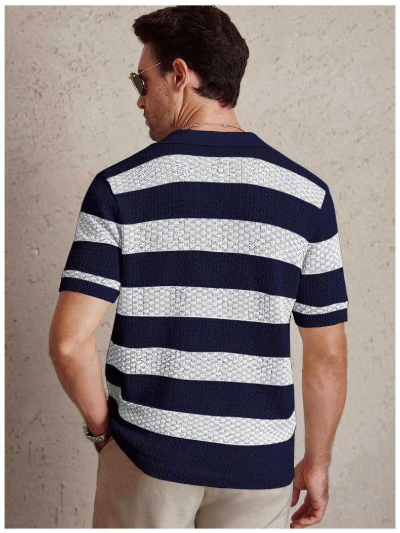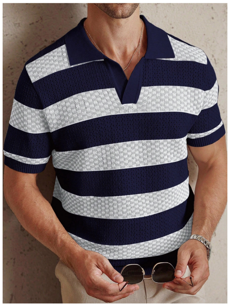 0 Review for Mens Striped Knitted Short-Sleeve Polo Shirt