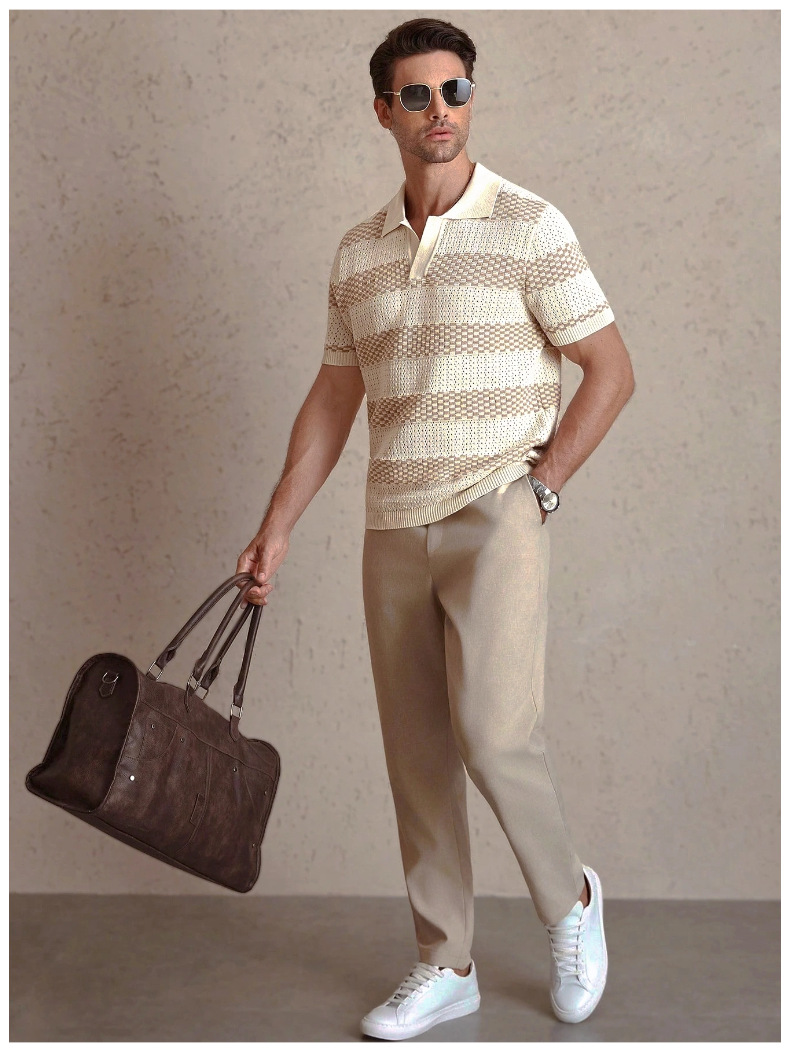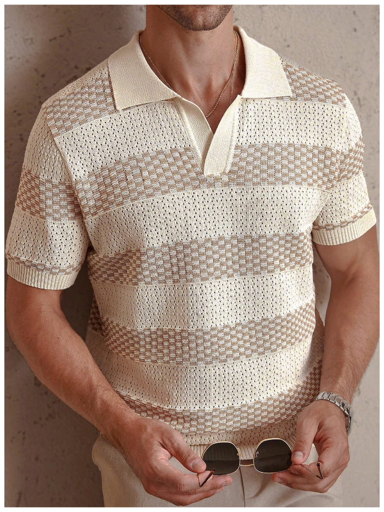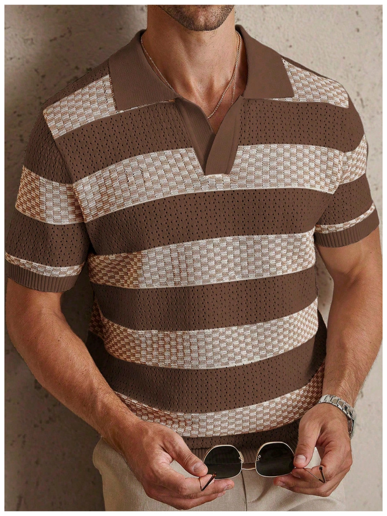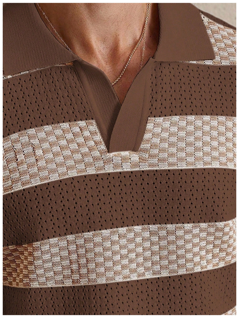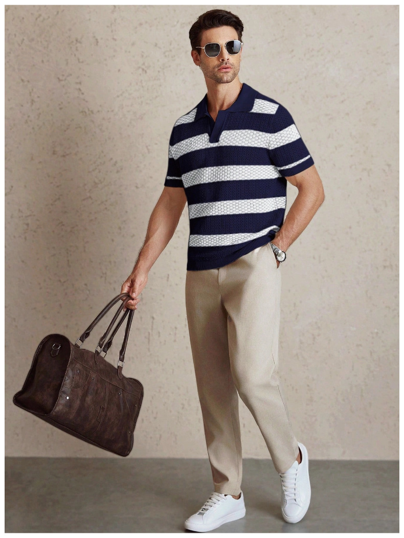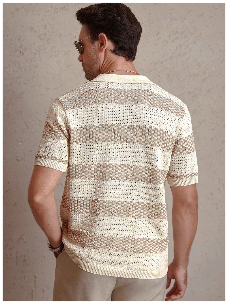 0 Review for Mens Striped Knitted Short-Sleeve Polo Shirt