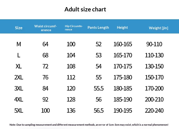 Sizes: M, L, XL, 2XL, 3XL, 4XL, 5XL, 100, 110, 120, 130, 140, 150, 160