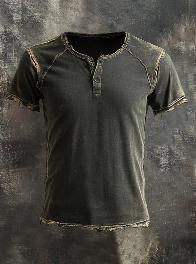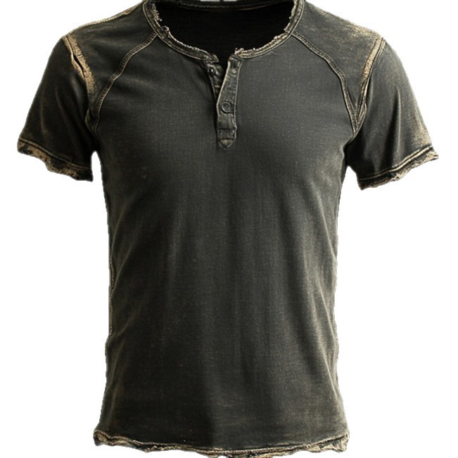 0 Review for Mens Vintage Distressed Raw Edge Short Sleeve T Shirt