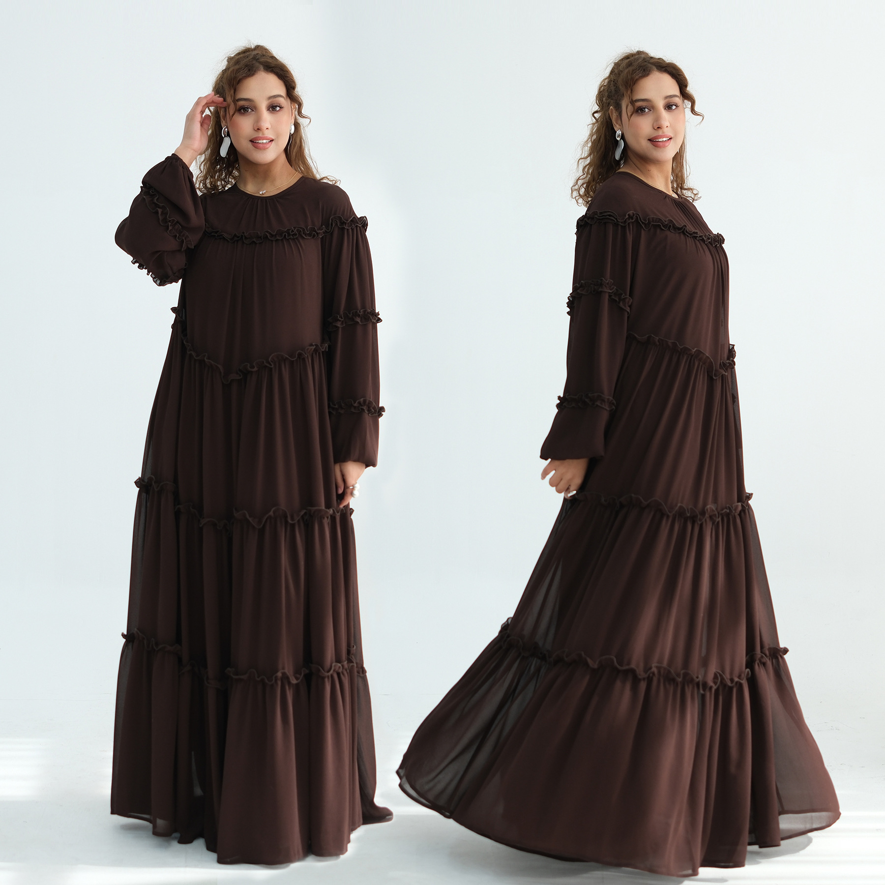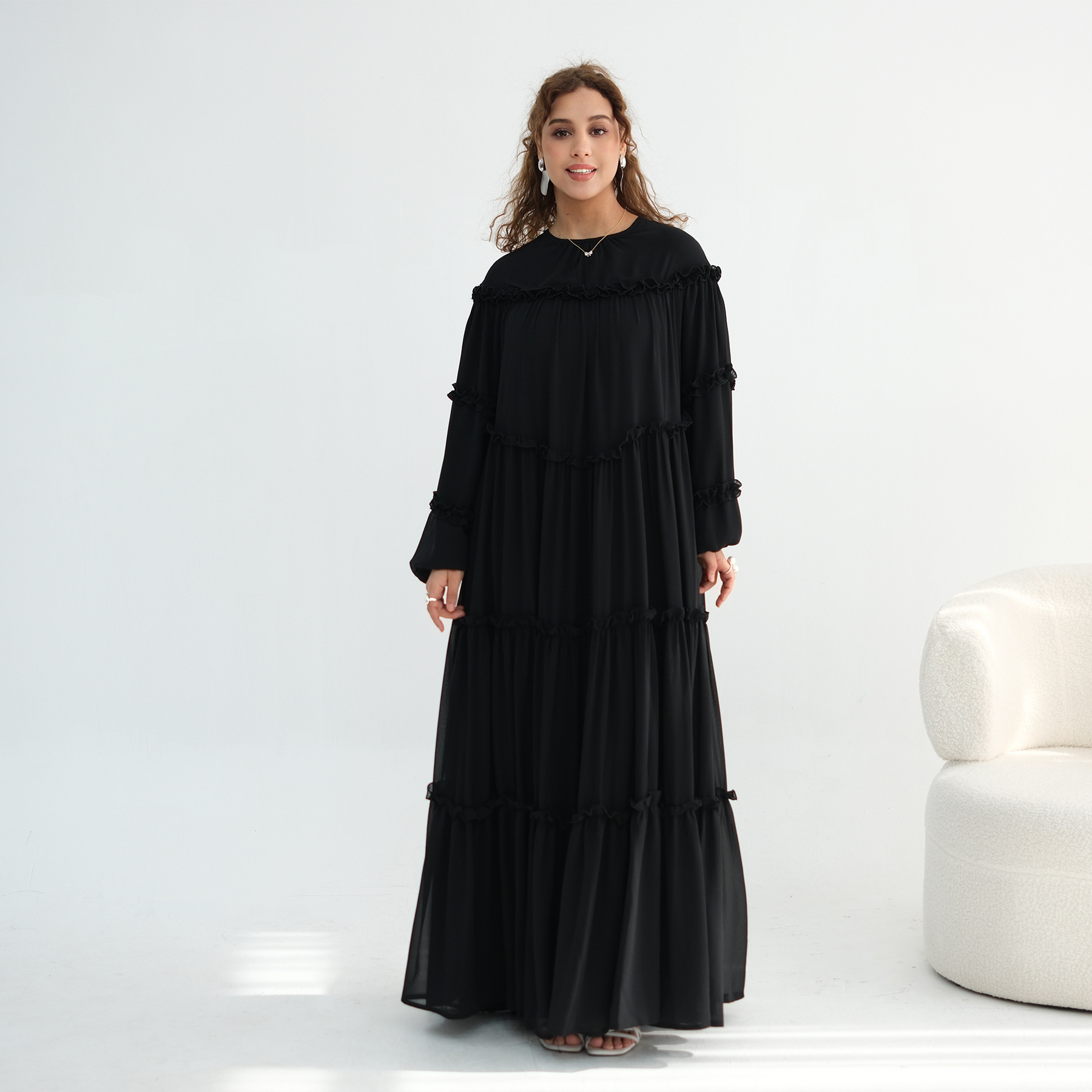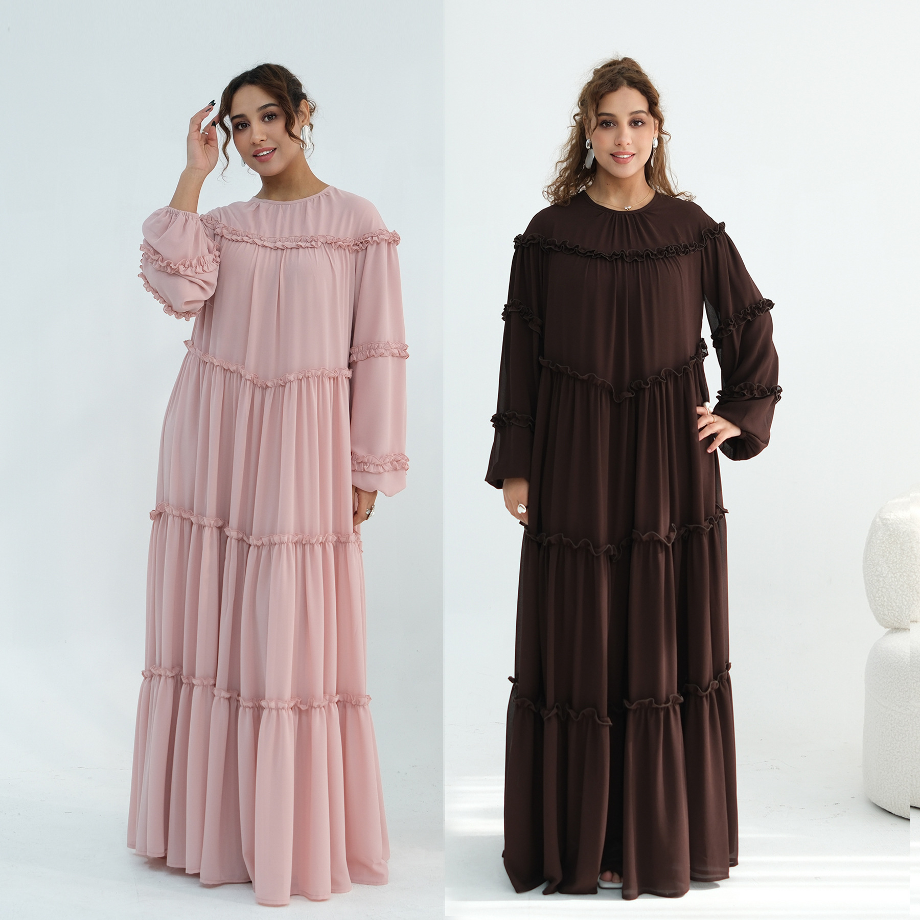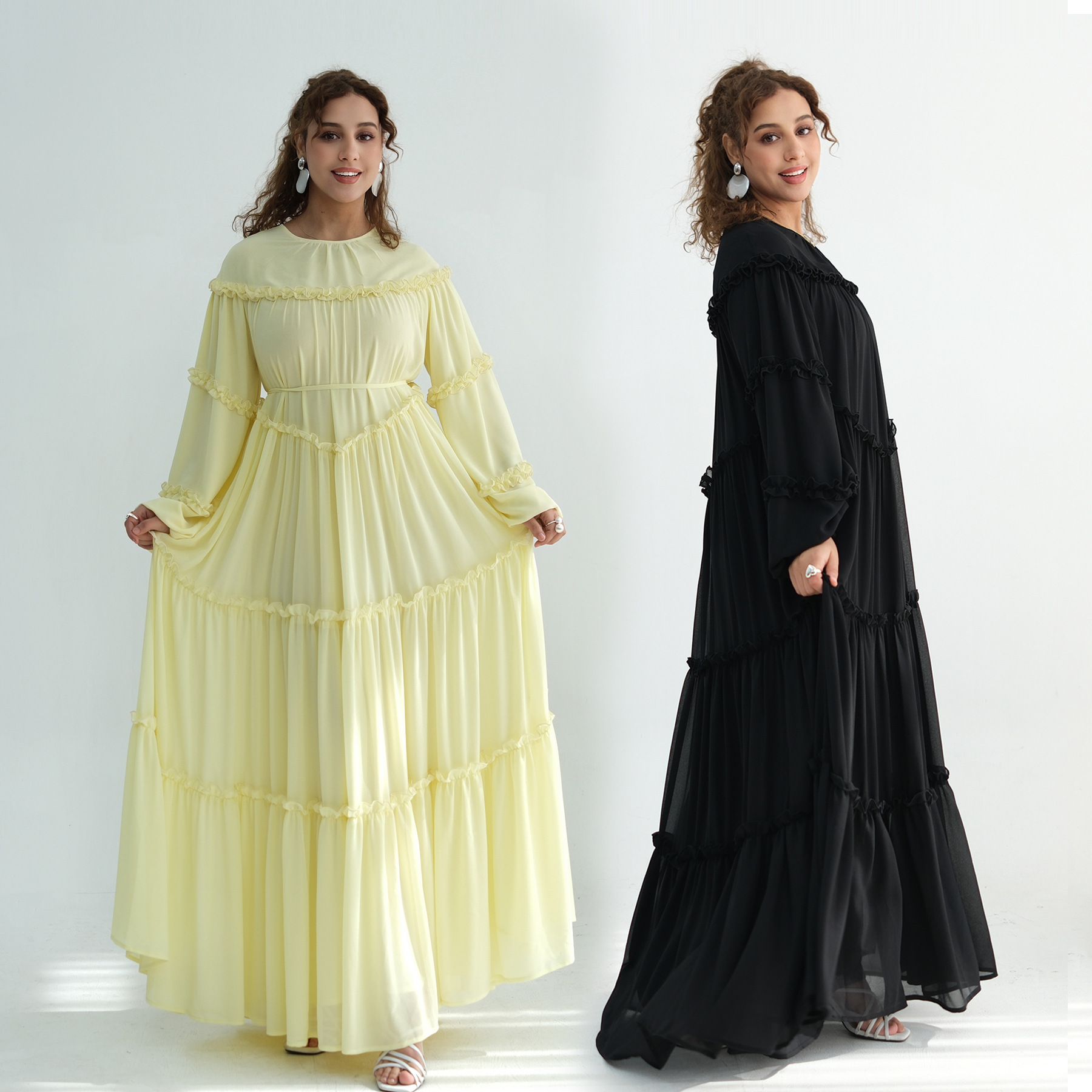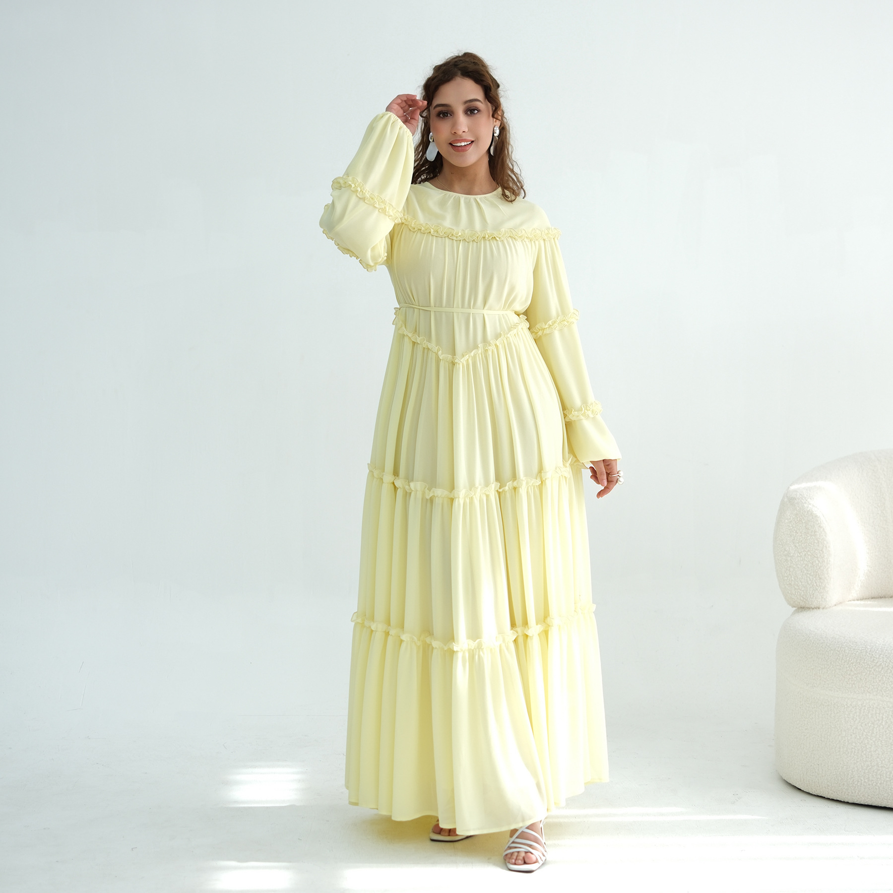 0 Review for Middle Eastern Lace-trimmed Tiered Cake Skirt Dress