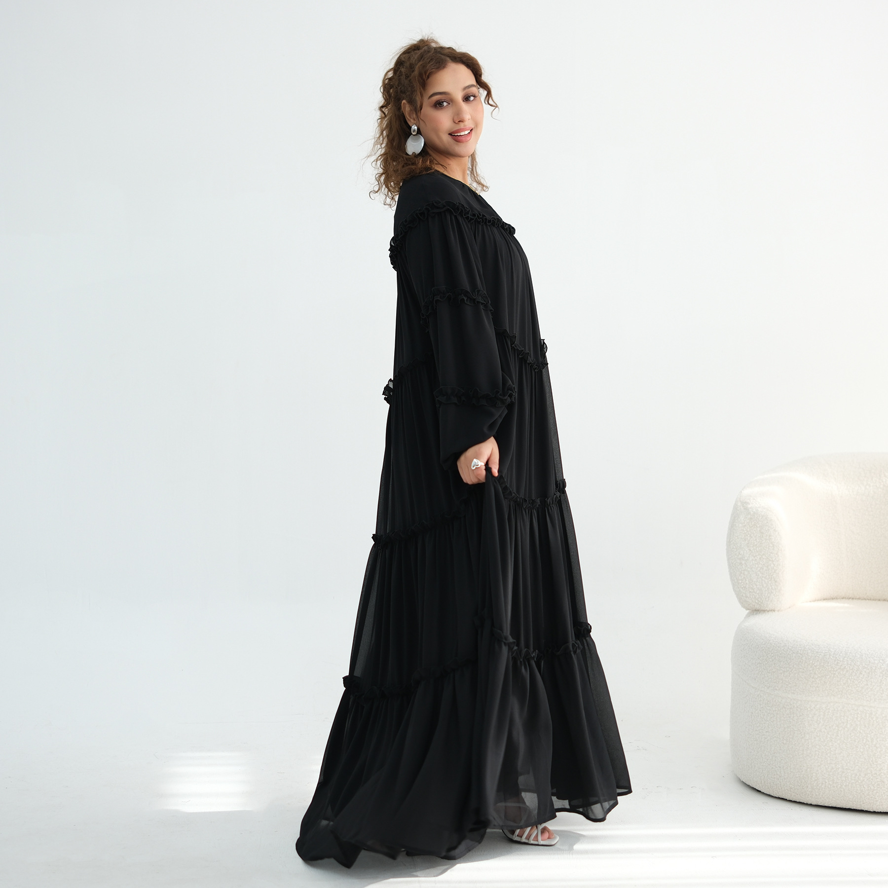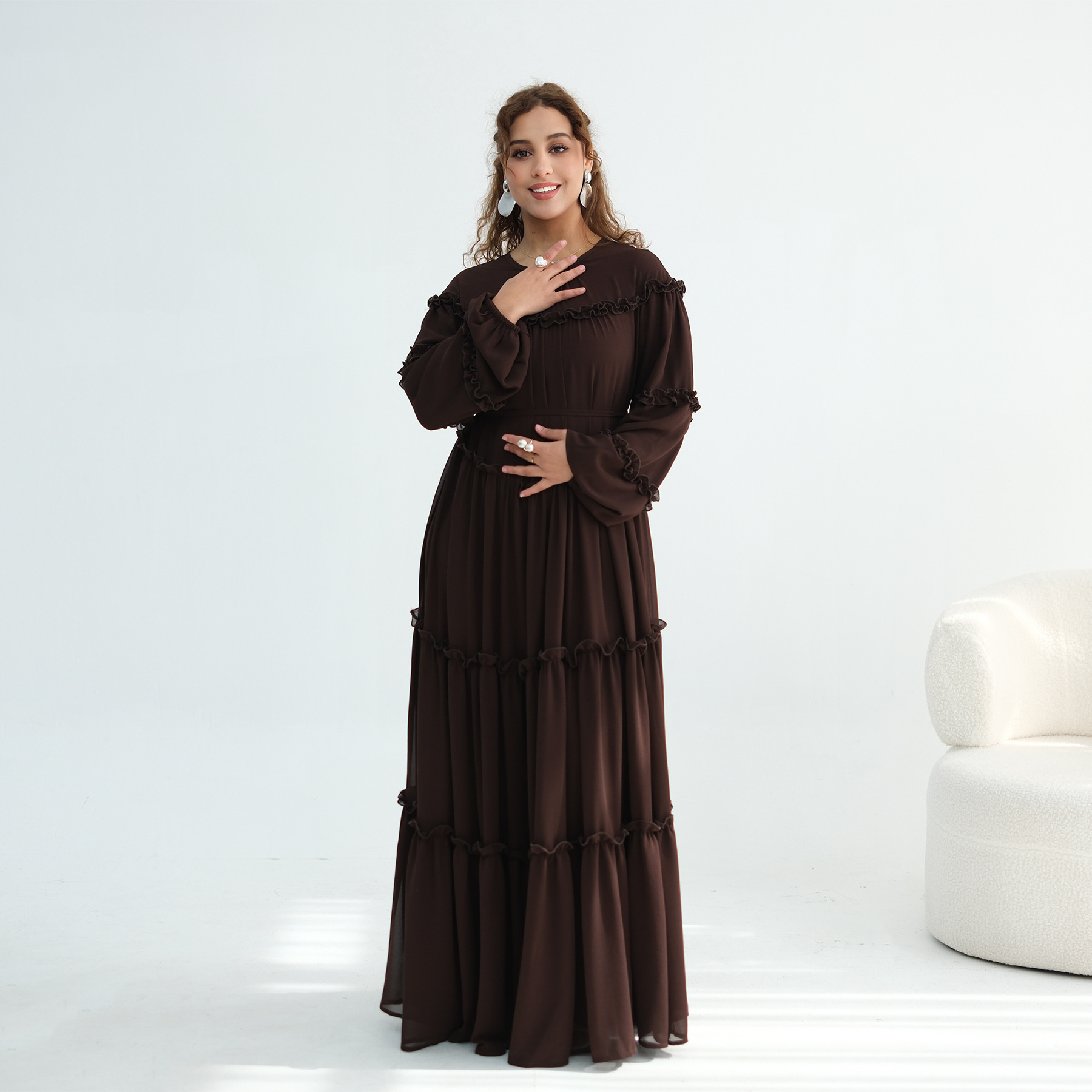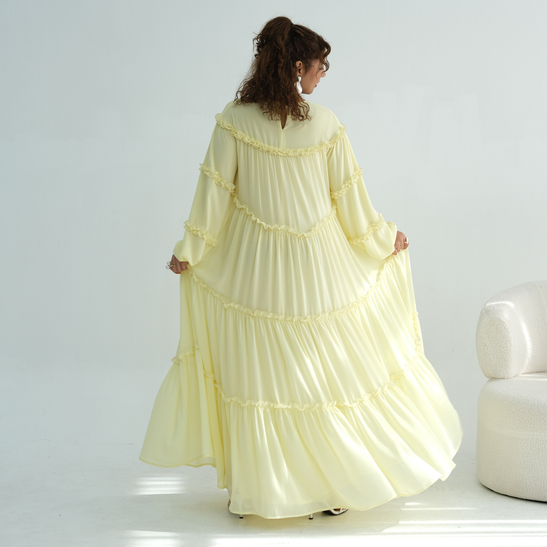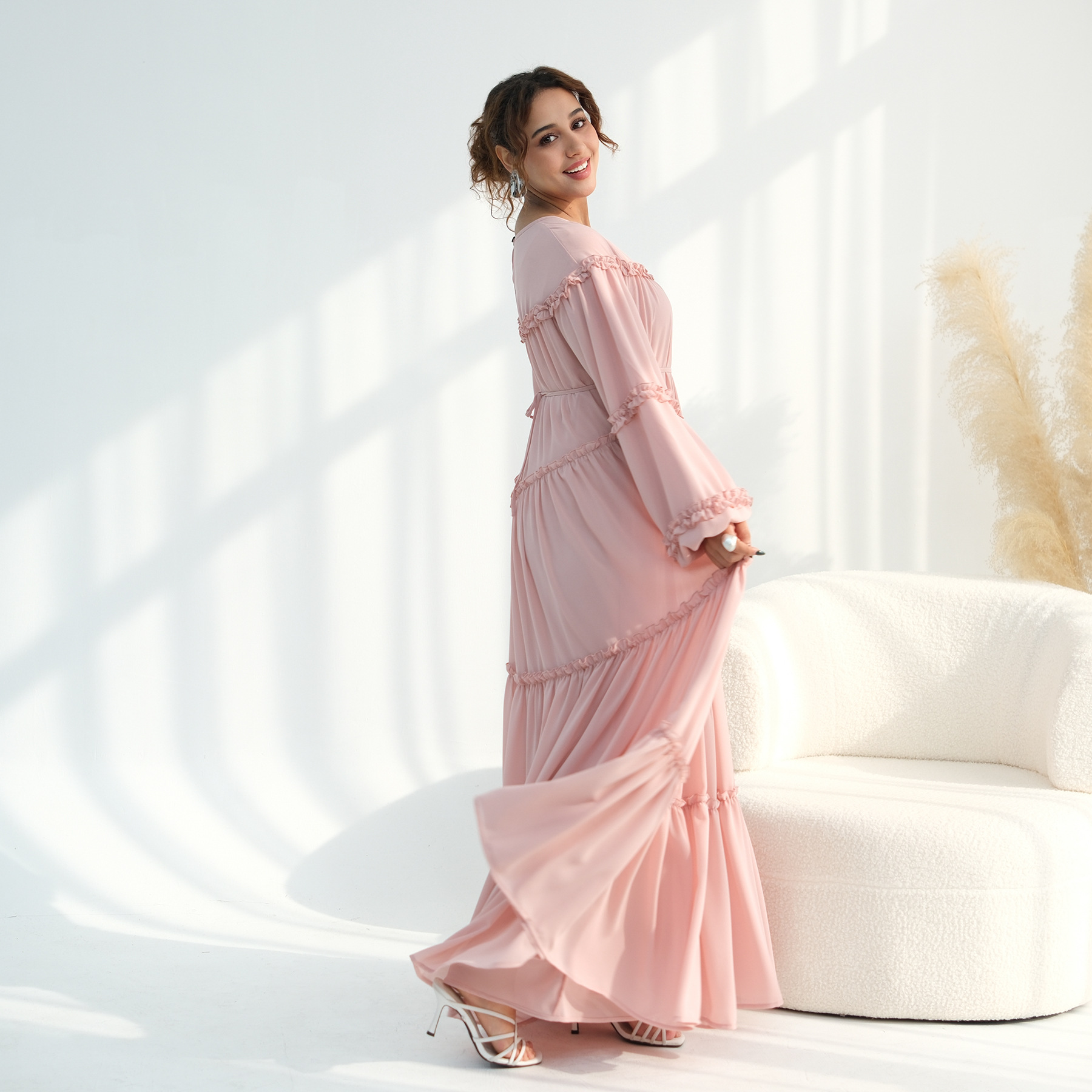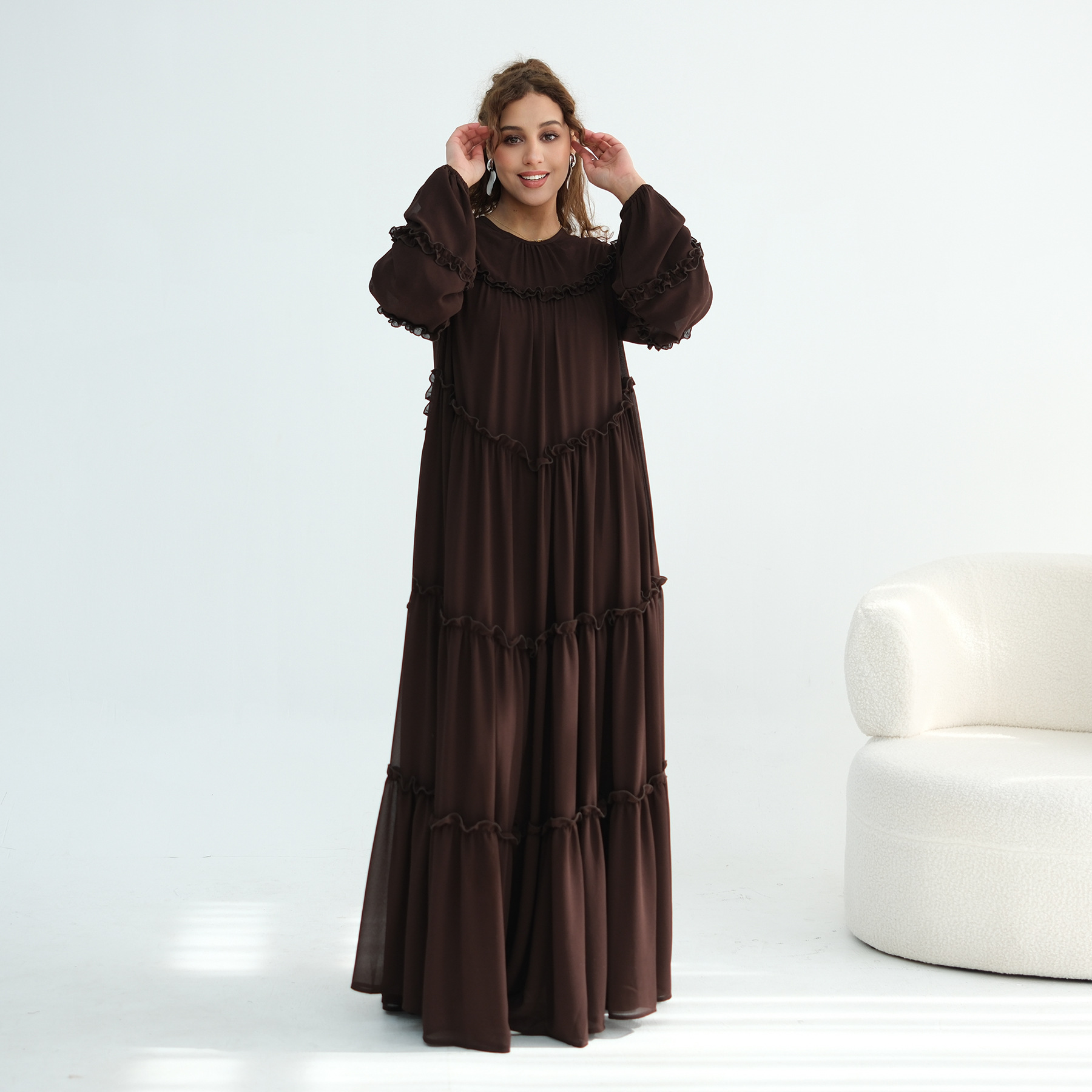 0 Review for Middle Eastern Lace-trimmed Tiered Cake Skirt Dress