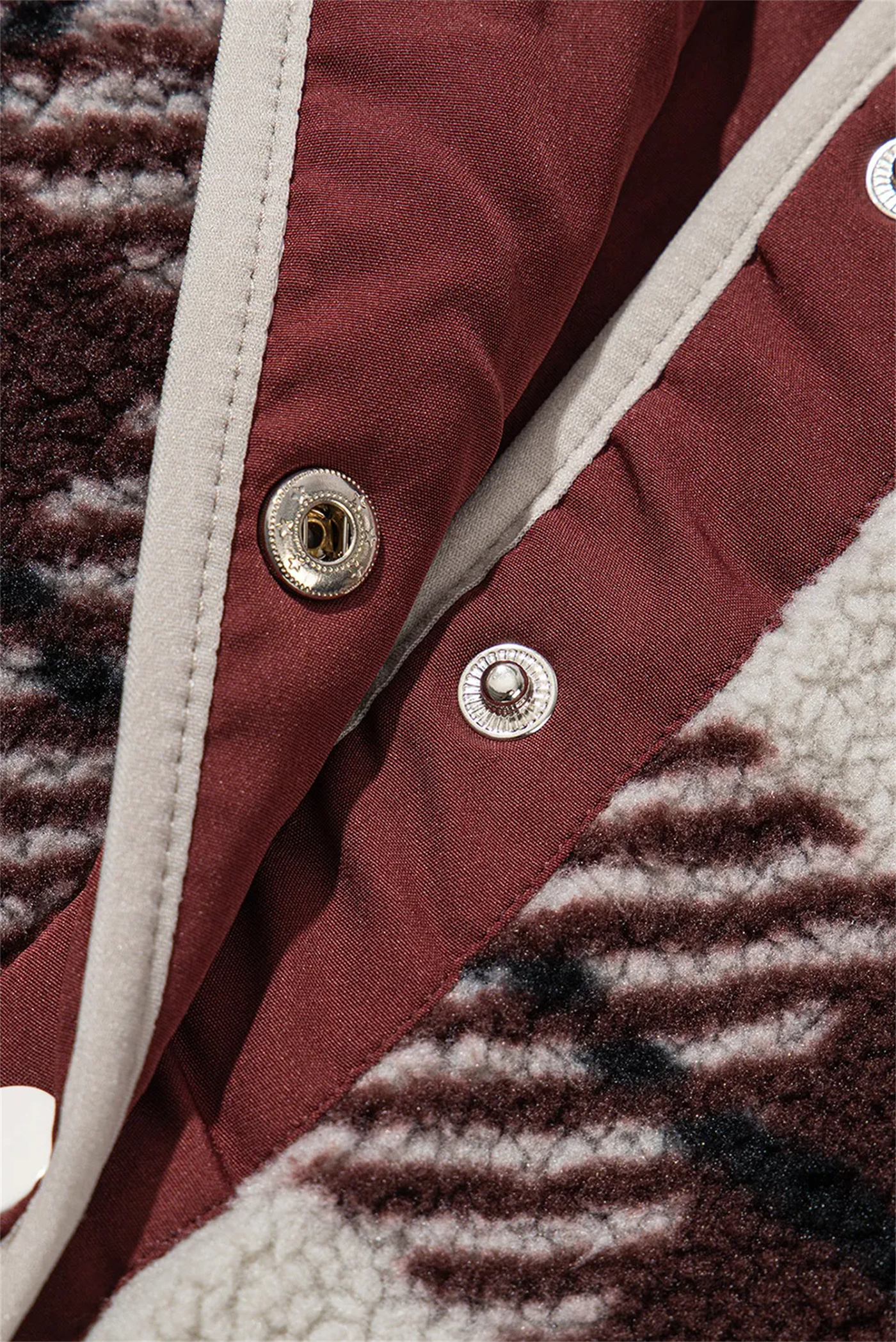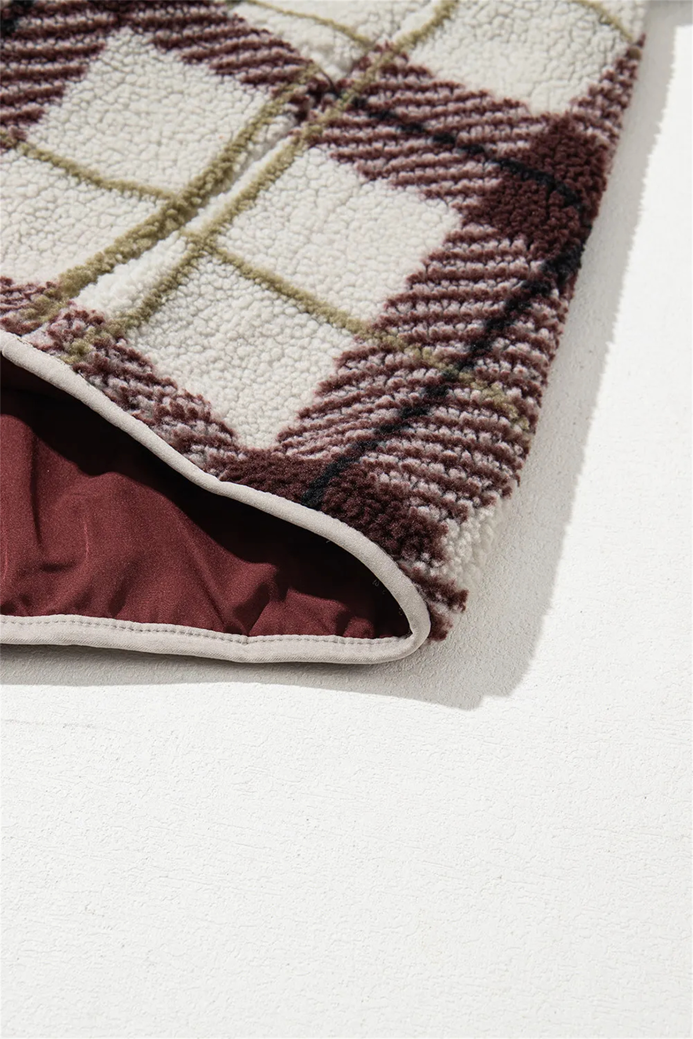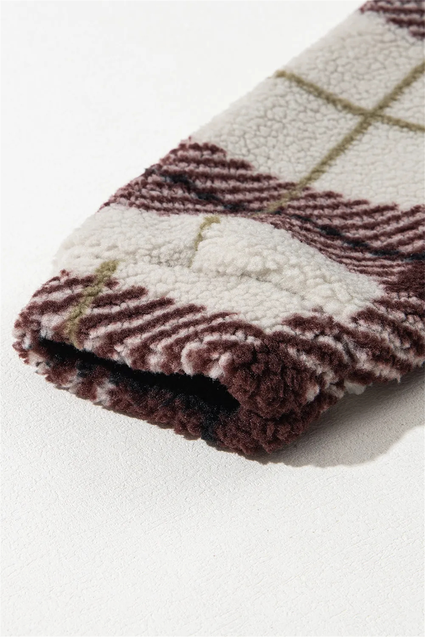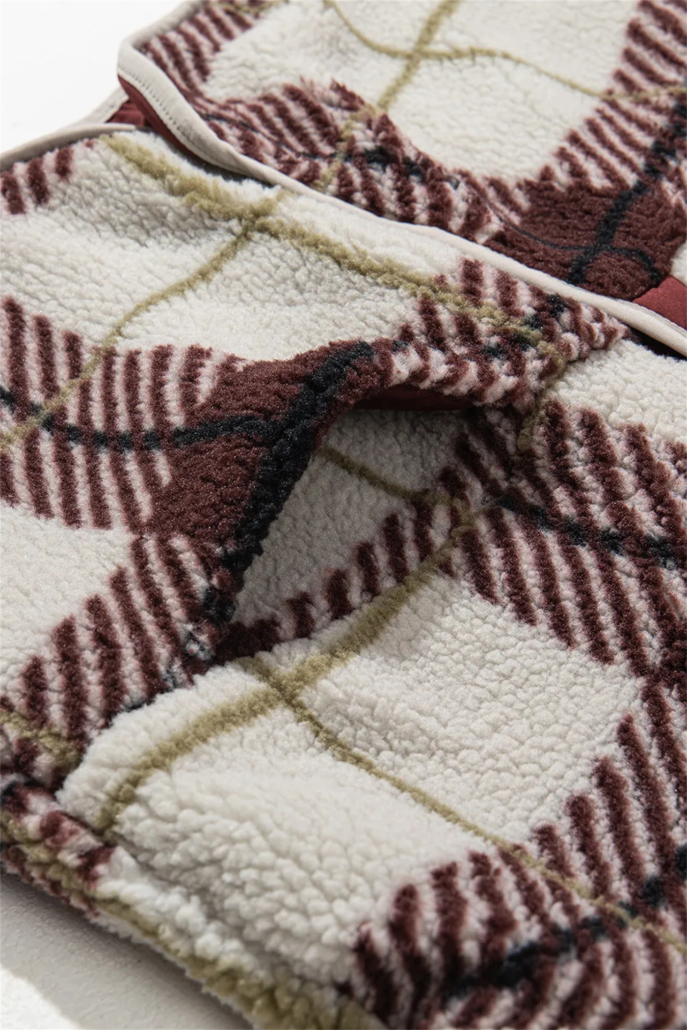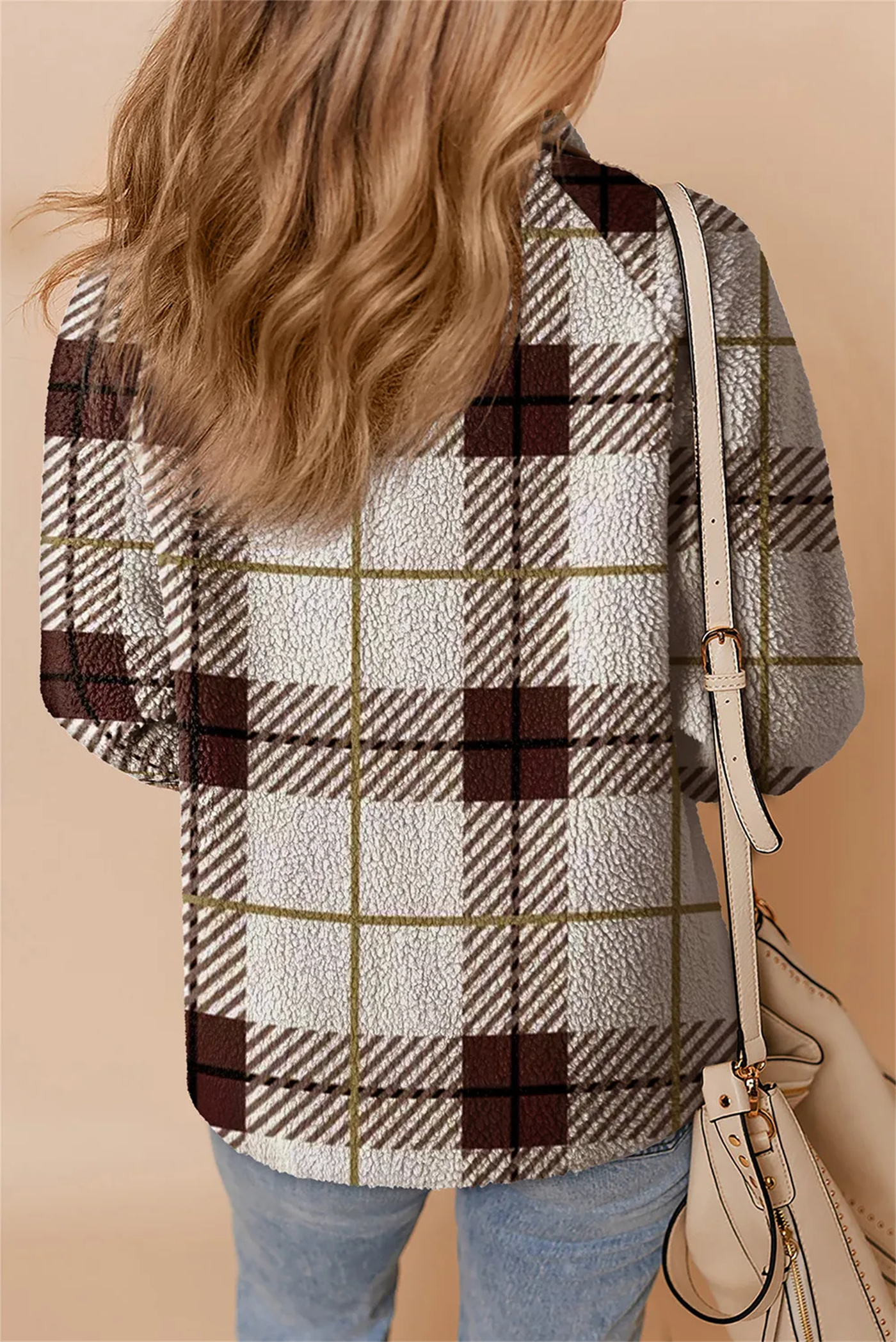 0 Review for Multicolour Plaid Print Buttoned Stand Collar Fleece Jacket