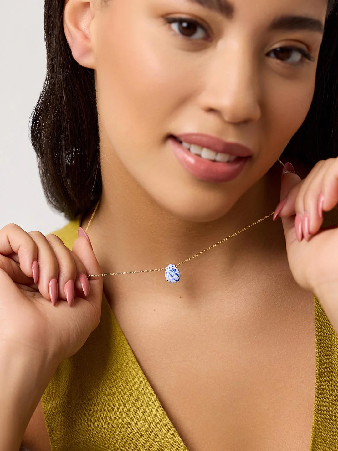 0 Review for National Style 18K Gold Blue And White Porcelain Necklace