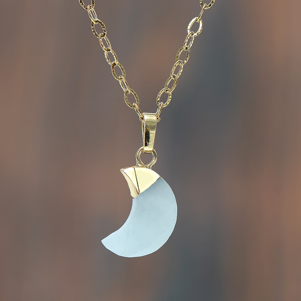 0 Review for Natural Stone Moon Shaped Pendant Necklace Stone Necklace