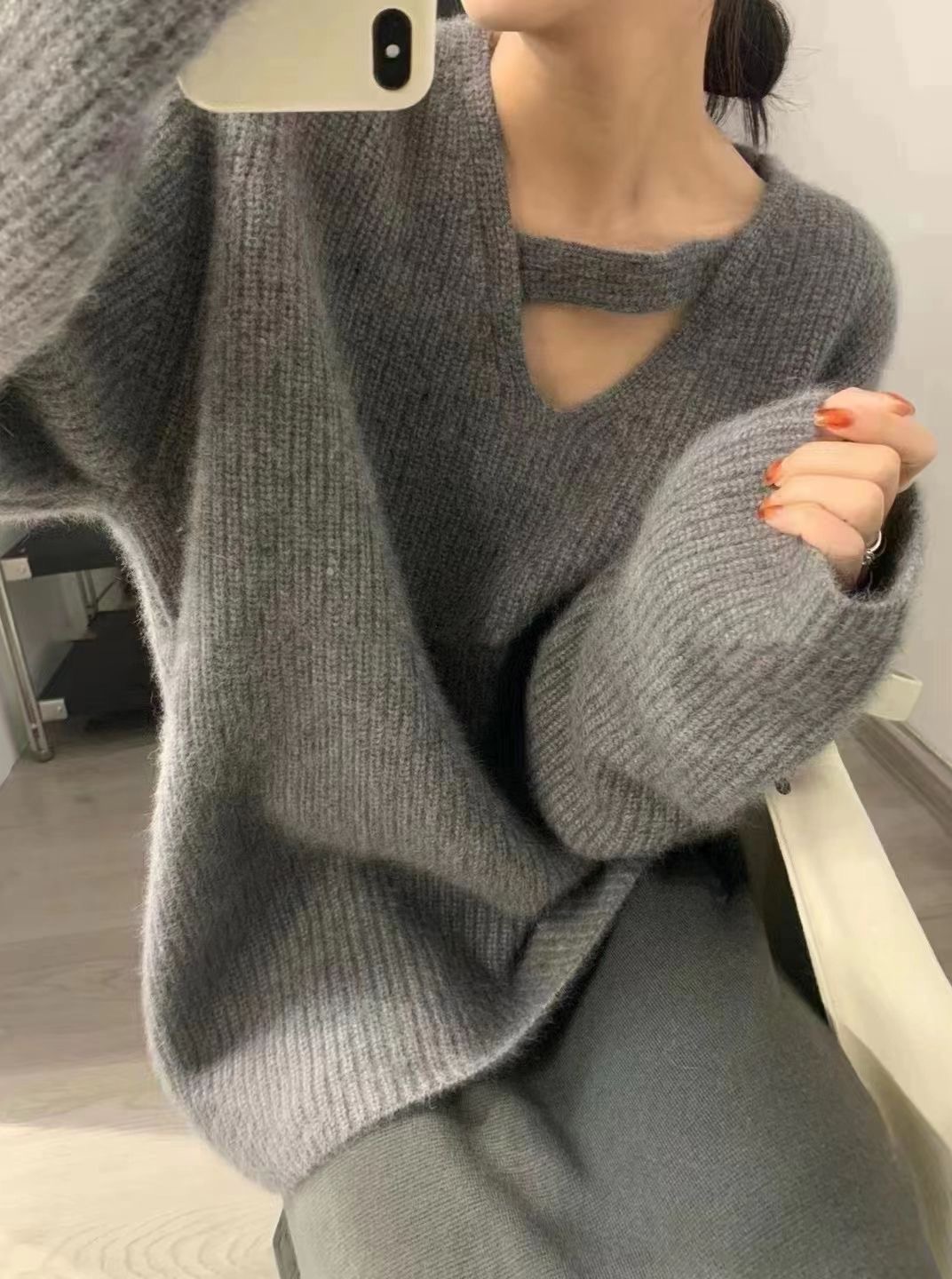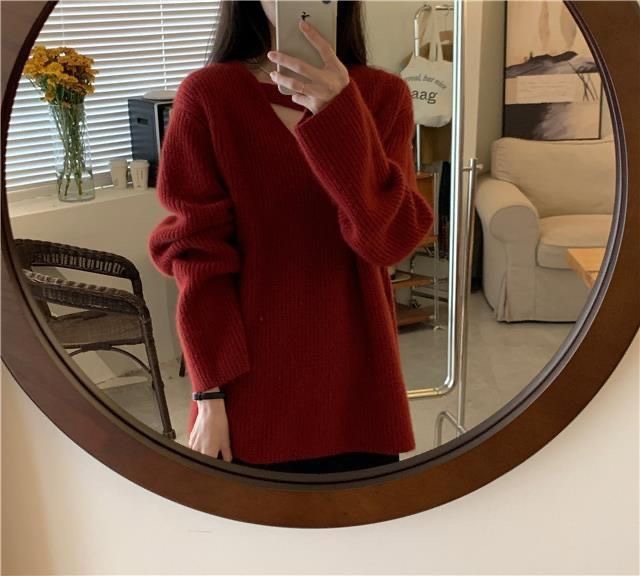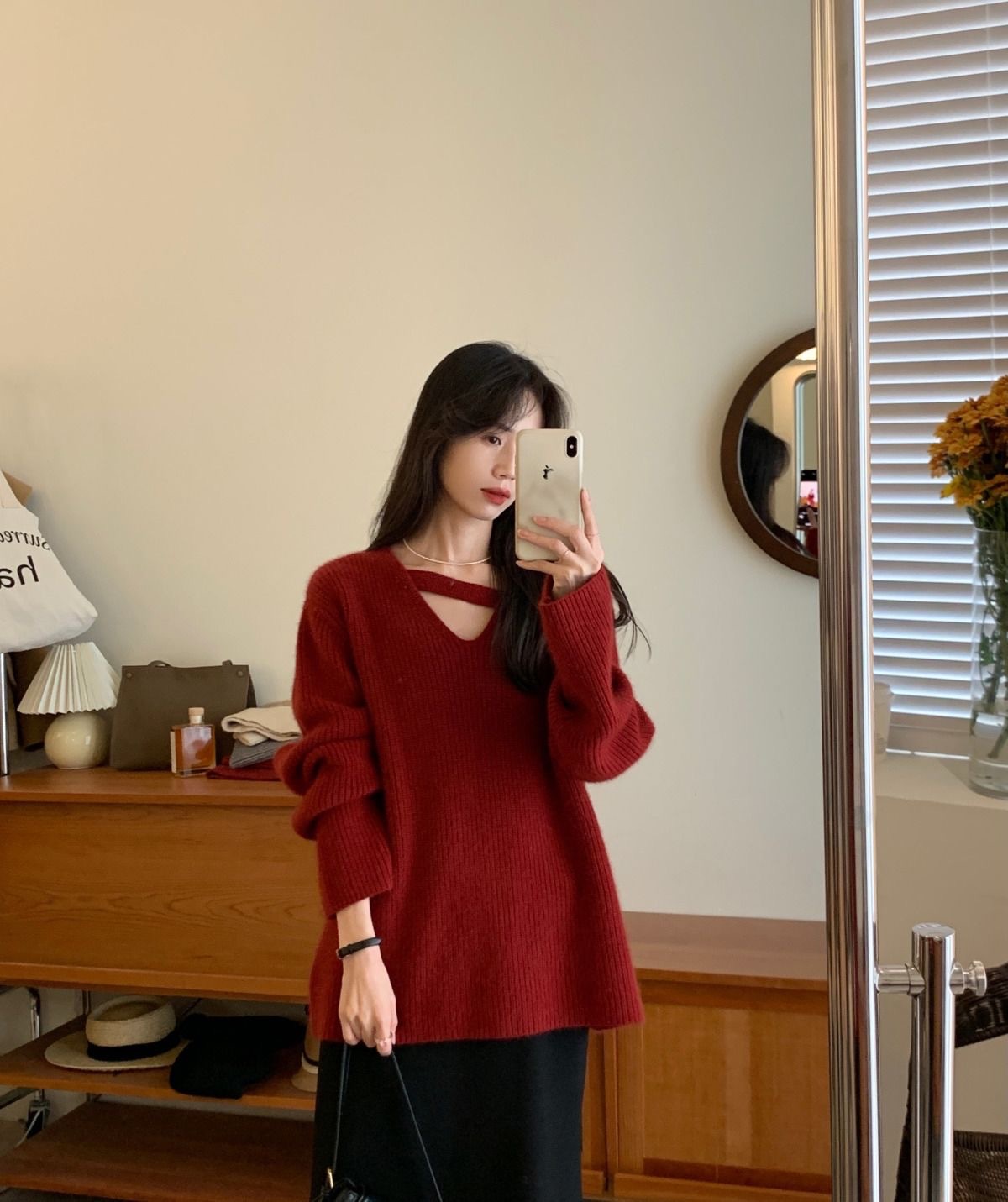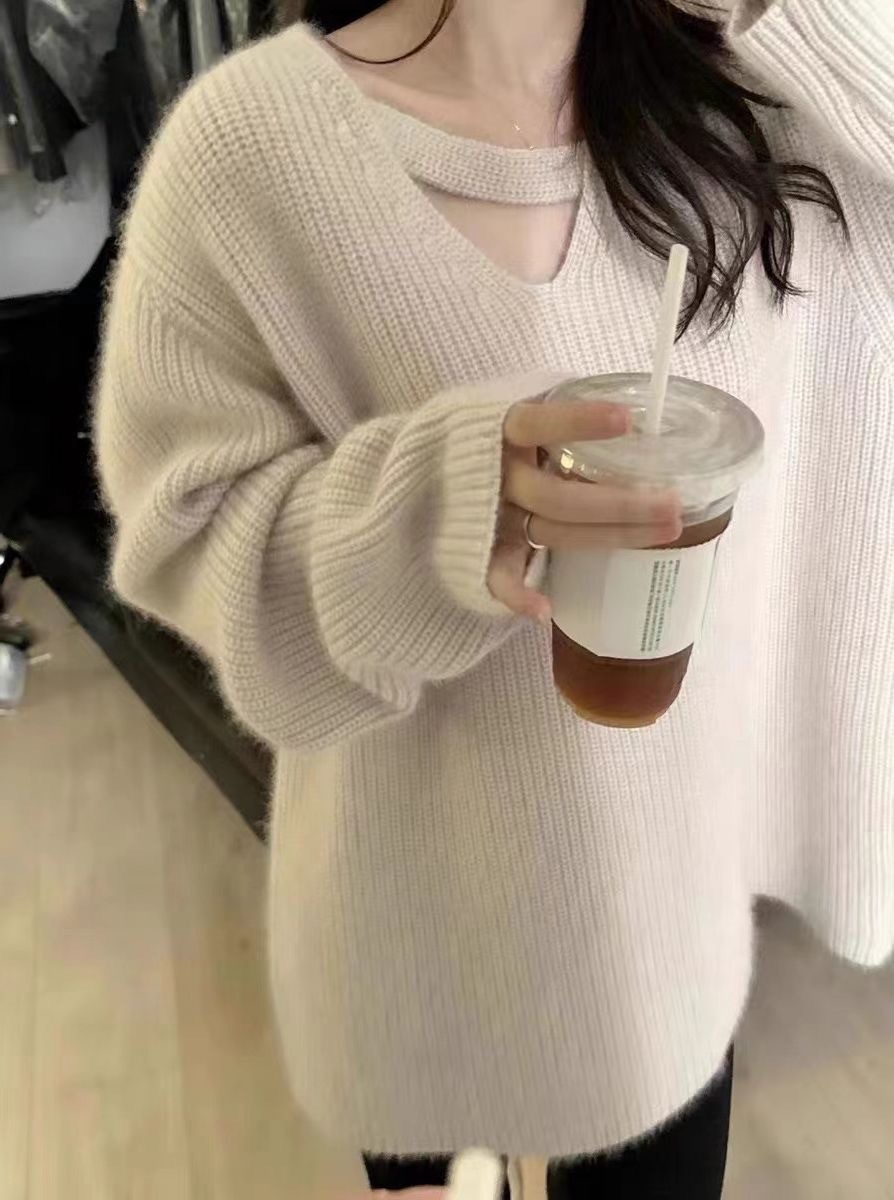 0 Review for New Fashion V-neck Loose Women's Bottoming Sweater