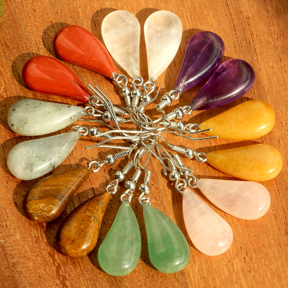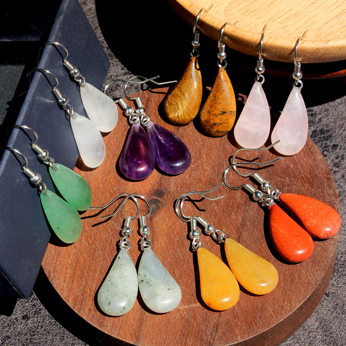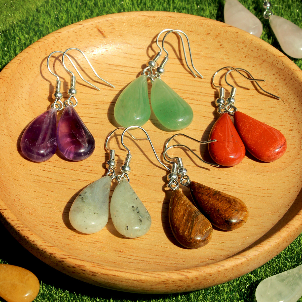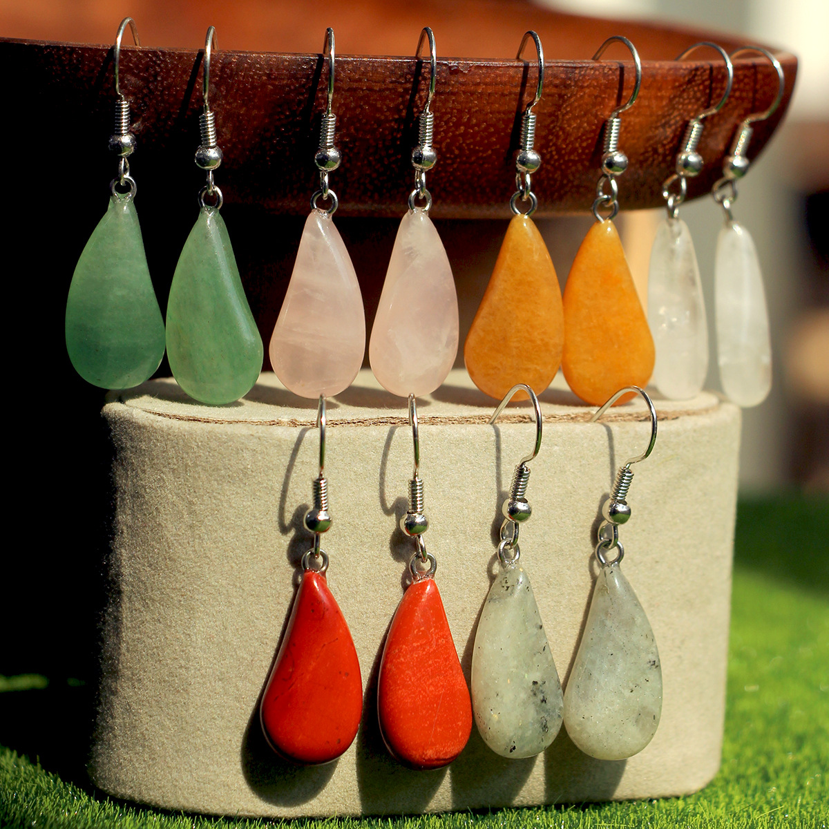 0 Review for New Flat Teardrop Semi-precious Earrings For Women