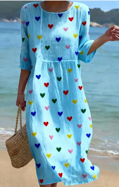 0 Review for New Stylish Casual Striped V-Neck Elegant Dress