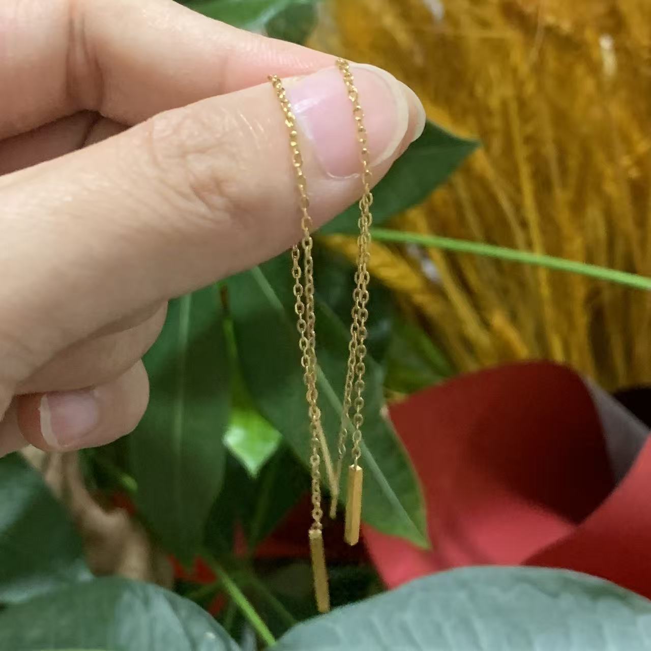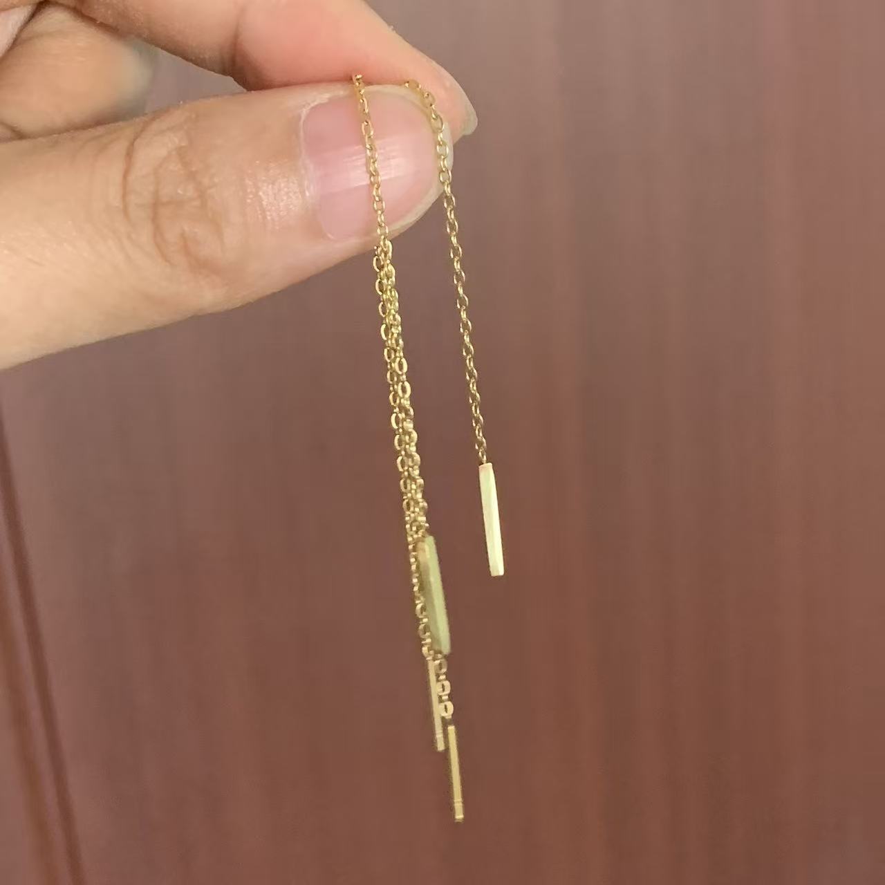Color: Gold, elongated earrings