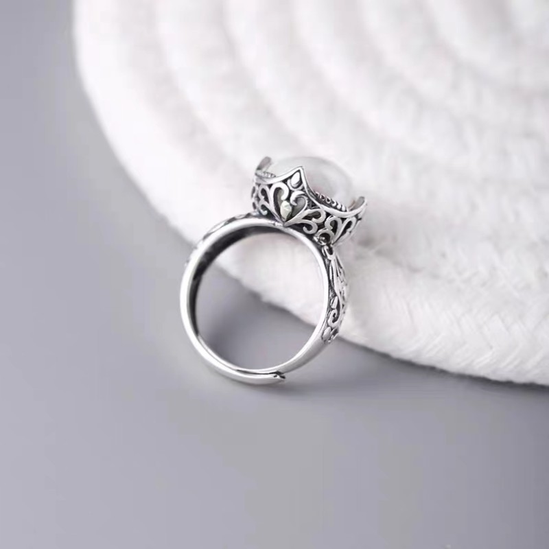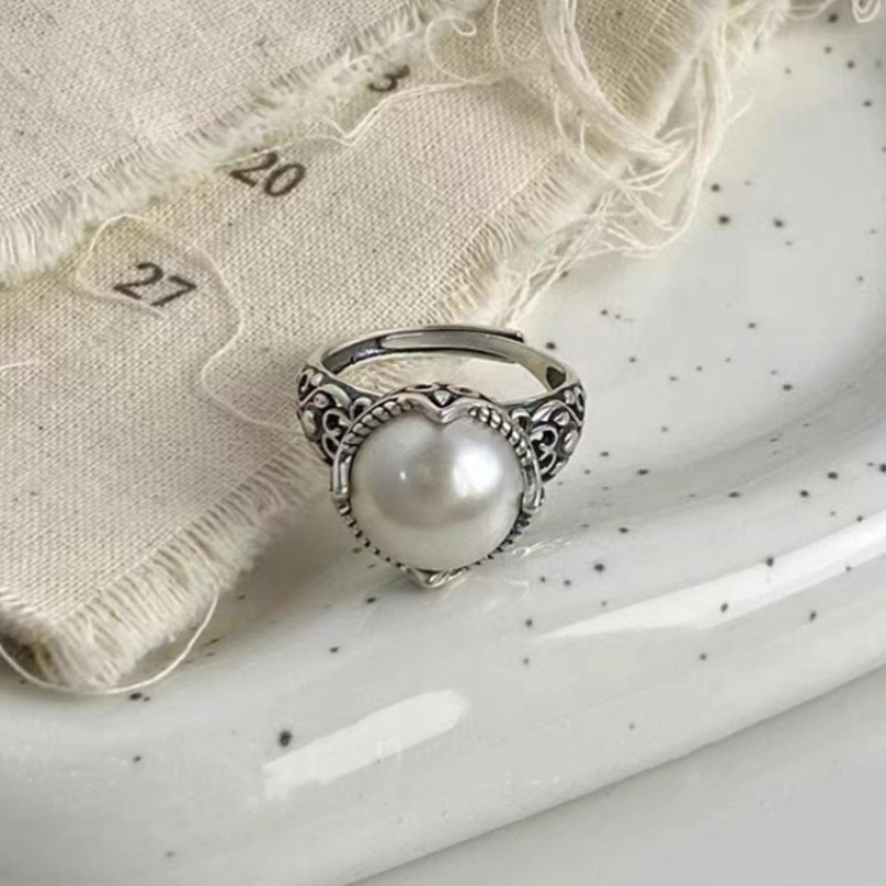 0 Review for Niche Retro Hollow Carved Round Pearl Ring