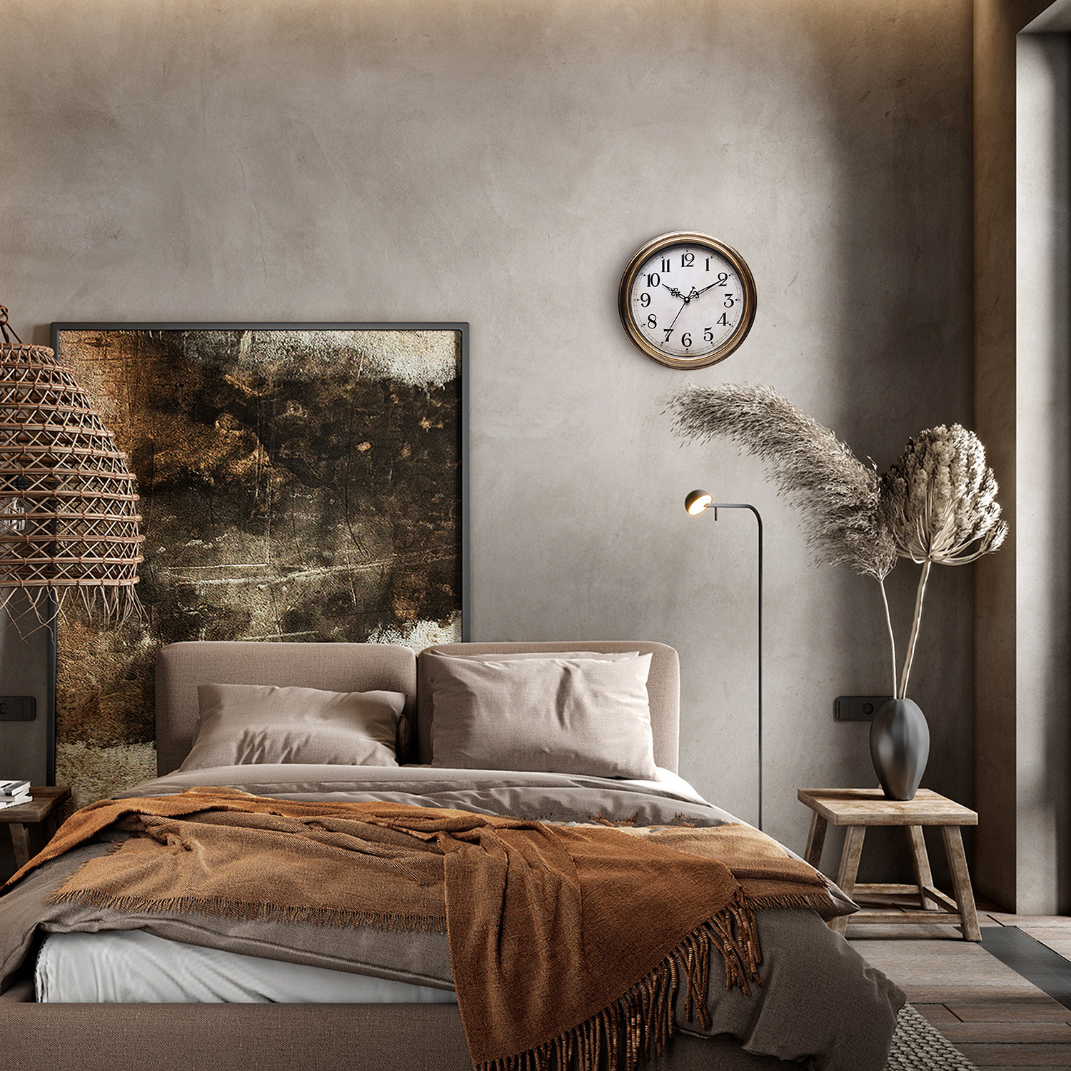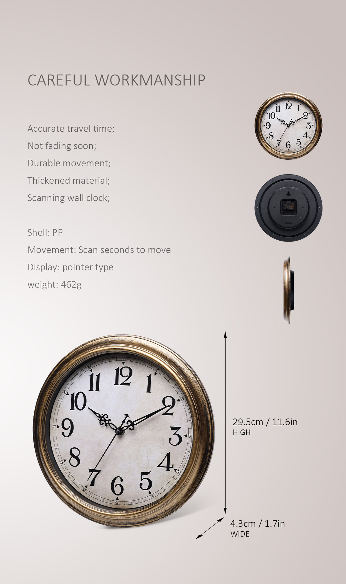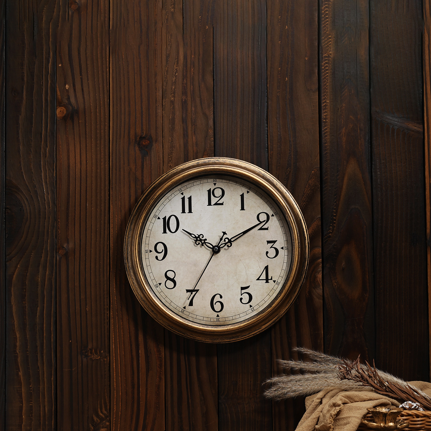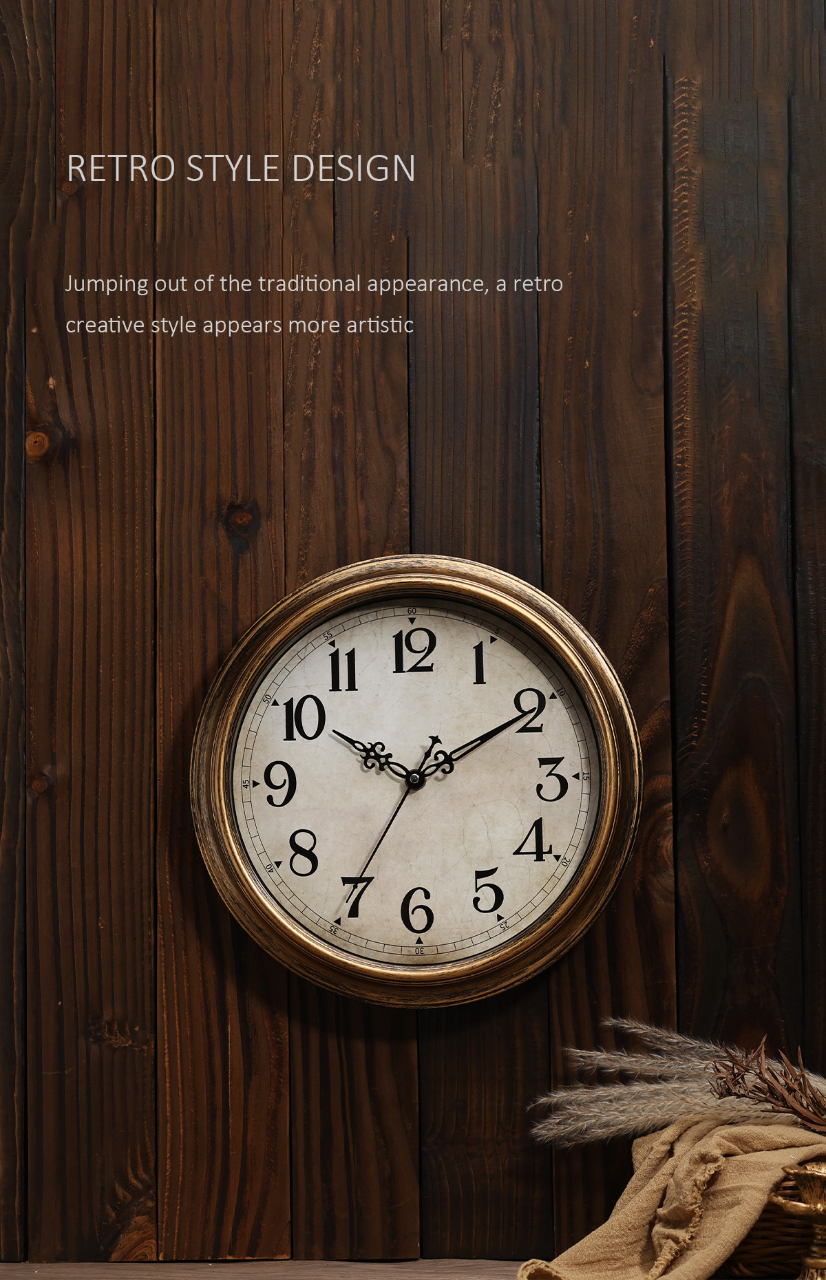 Nordic Retro Wall Clock Living Room Home Simple Creative Punch-free Mute Quartz Clock