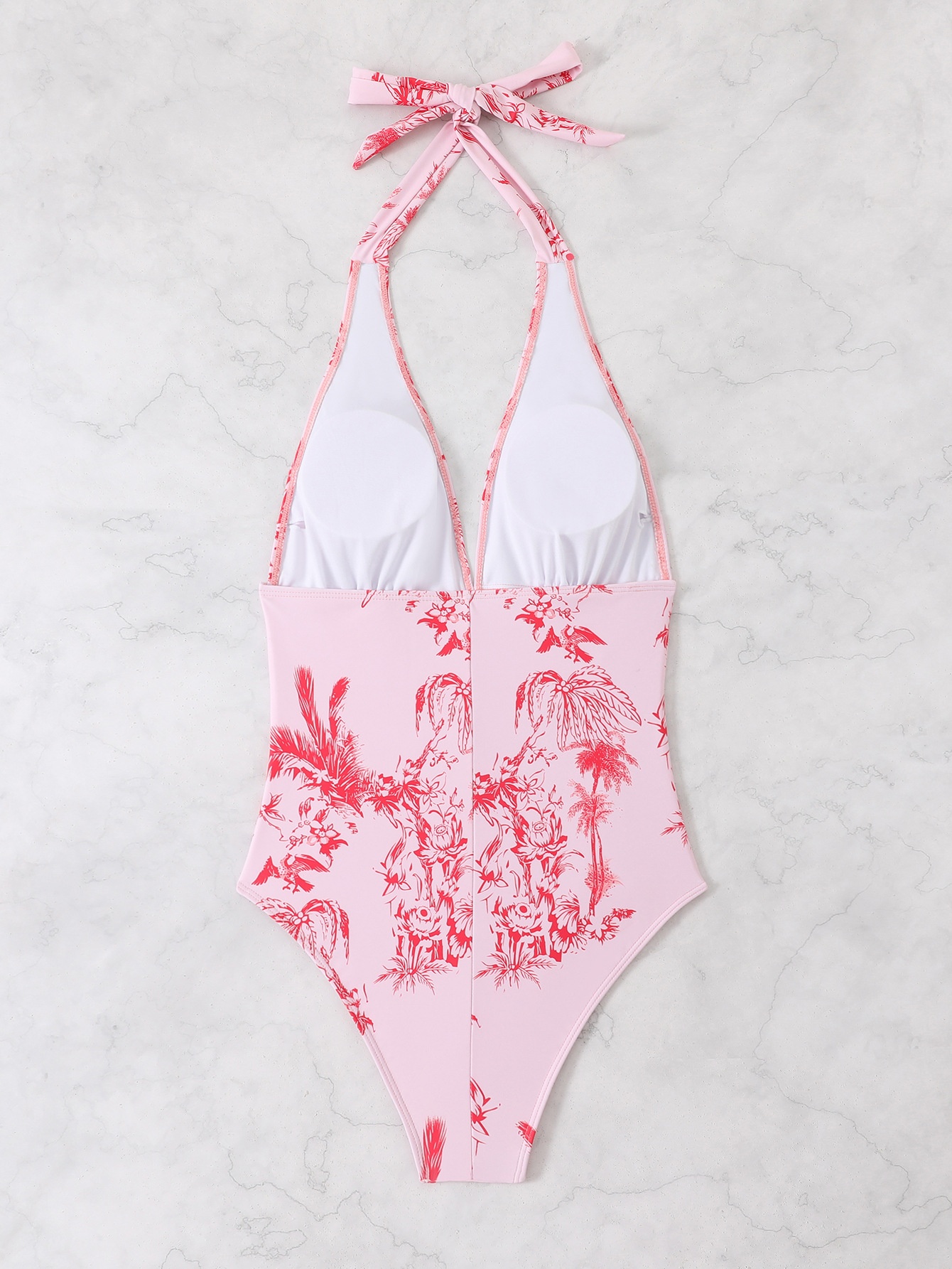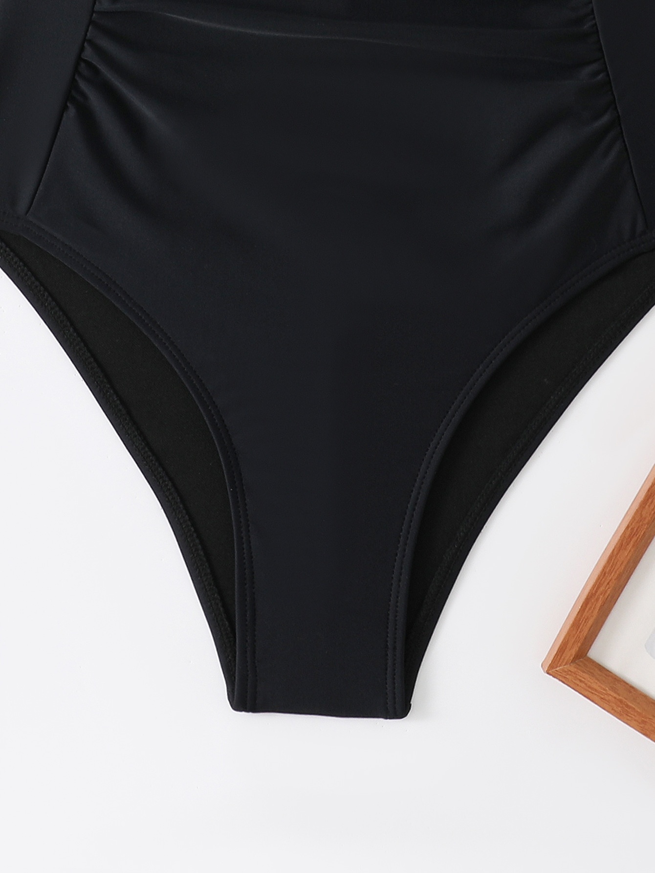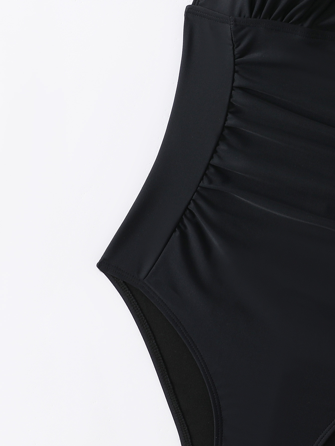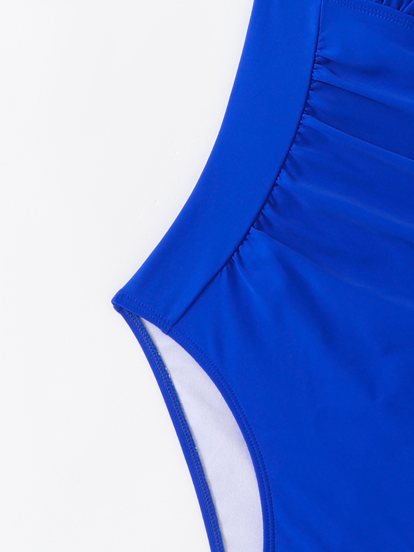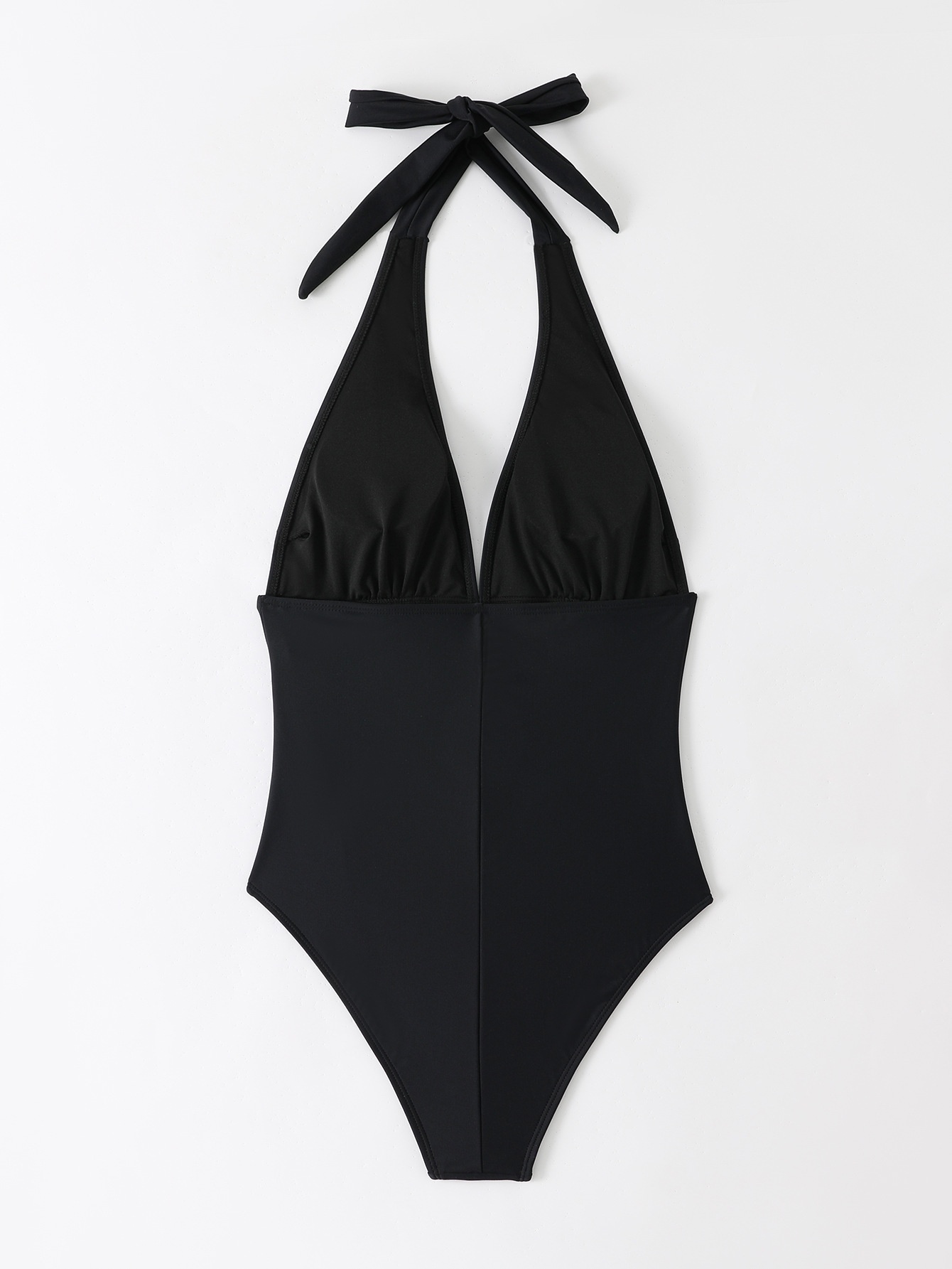 One Piece Swimsuit Halter Deep V-neck Gather Conservative Swimsuit For Women