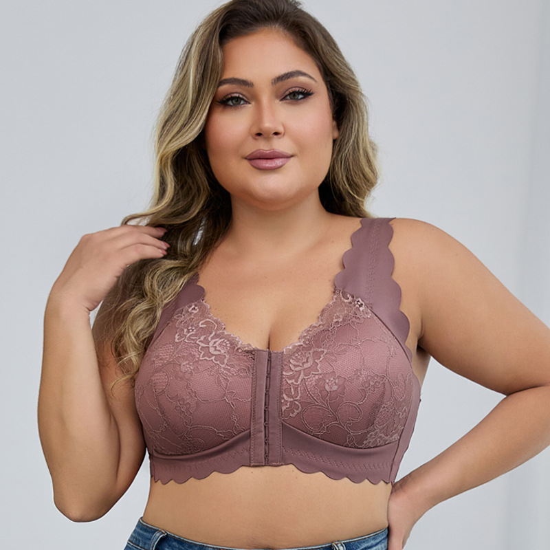 0 Review for Plus Size Front-Closure Lace Bra Thin With Fixed Cups