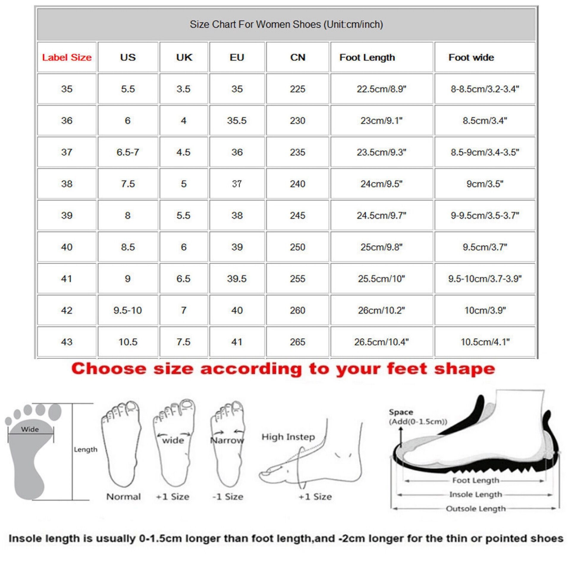 Sizes: 34, 35, 36, 37, 38, 39, 40 — Custom-made items are non-returnable and non-exchangeable; 41 — Custom-made items are non-returnable and non-exchangeable; 42 — Custom-made items are non-returnable and non-exchangeable; 43 — Custom-made items are non-returnable and non-exchangeable