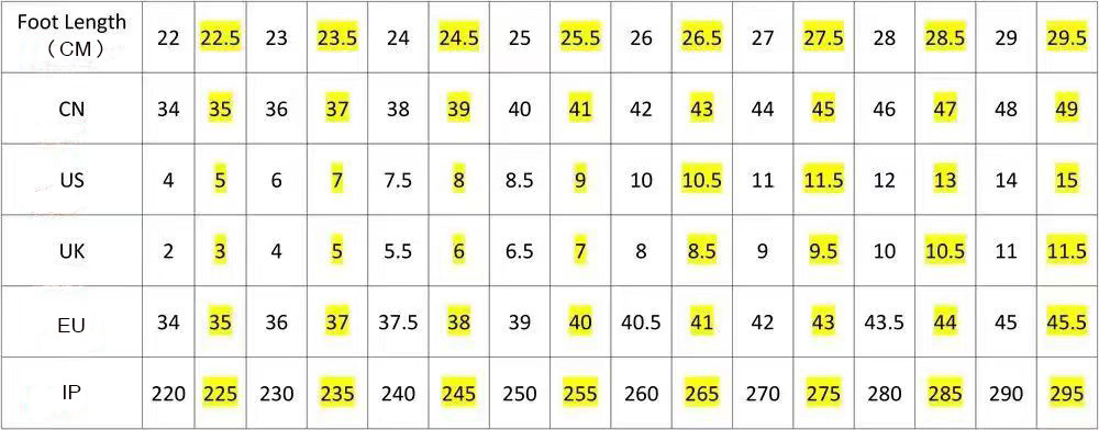 Sizes: 34, 35, 36, 37, 38, 39, 40, 41 — no returns or exchanges; 42 — no returns or exchanges; 43 — no returns or exchanges