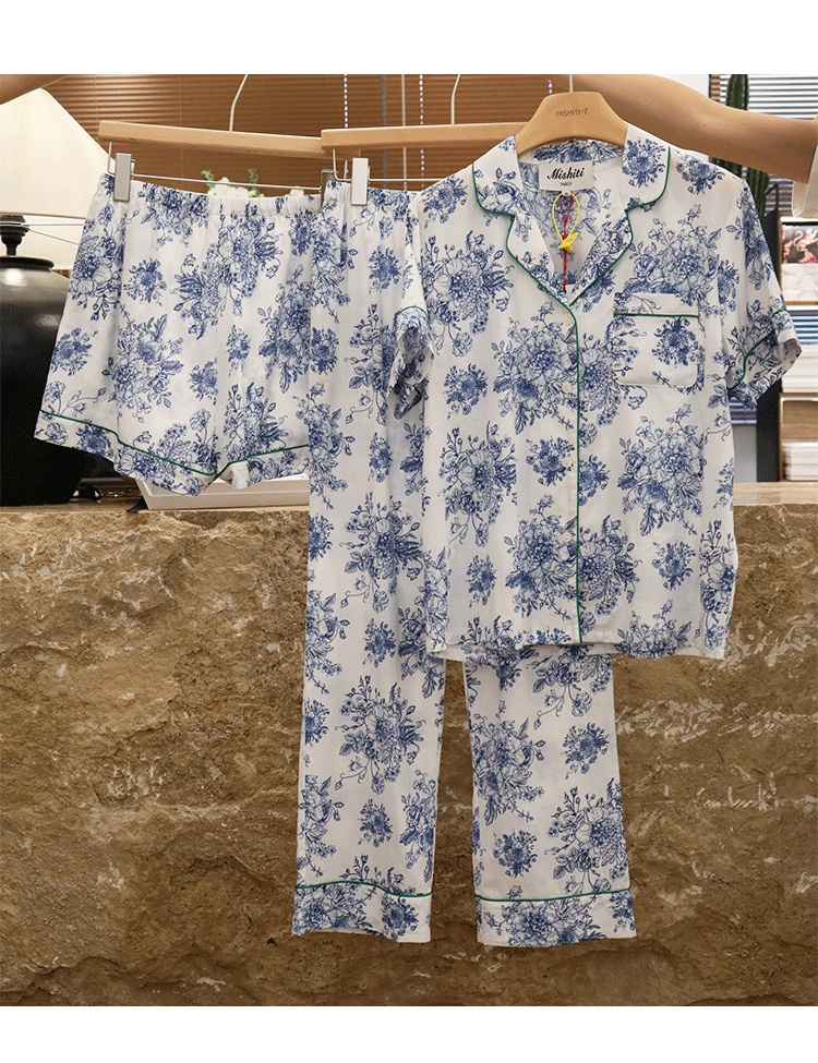 0 Review for Printed Pajamas Women's Three-piece Set Home