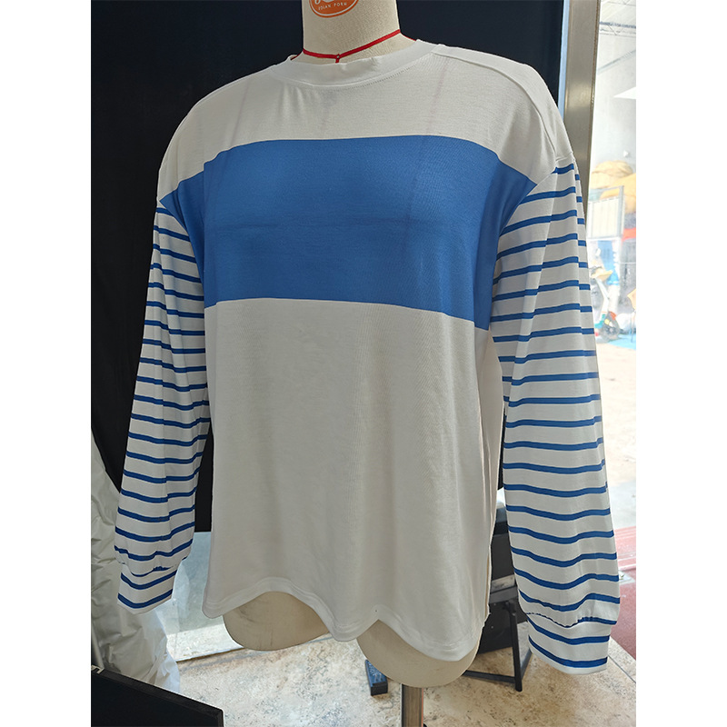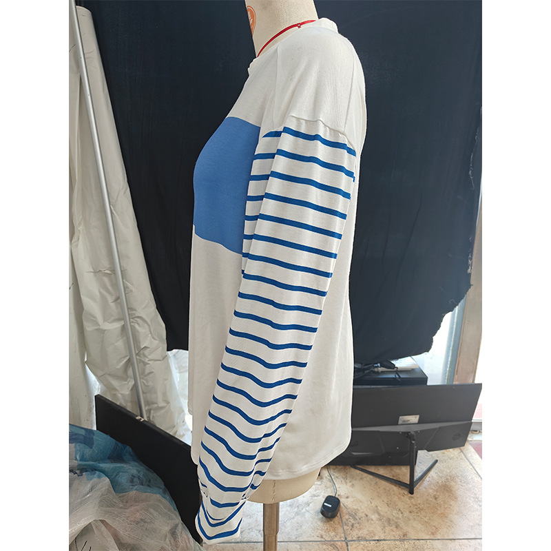 0 Review for Pullover Crewneck Striped Casual Contrast-color Long-sleeve Top