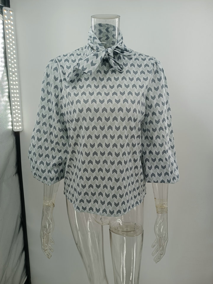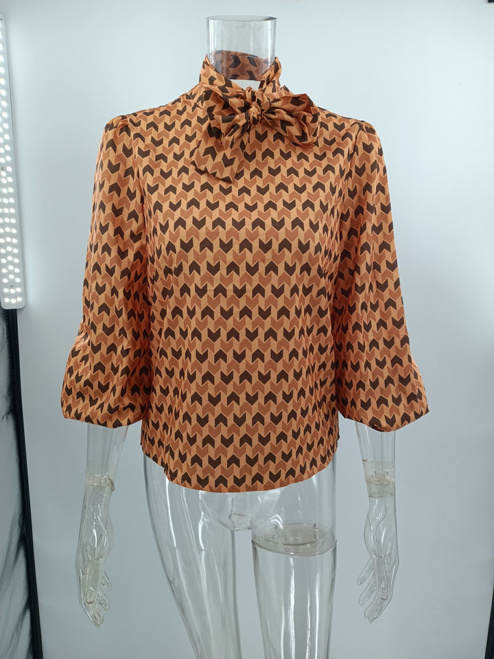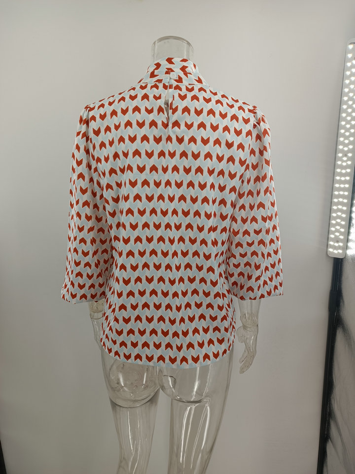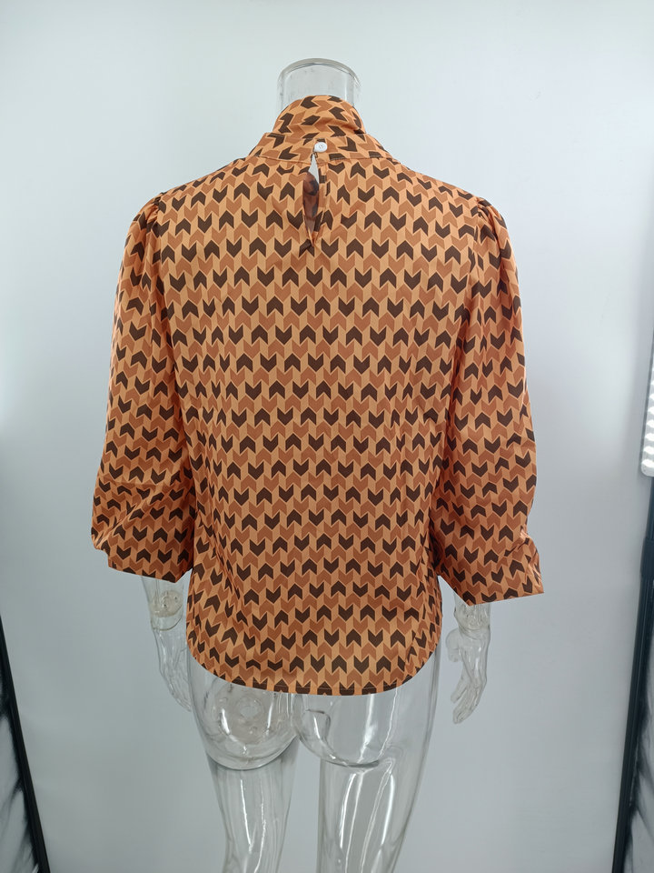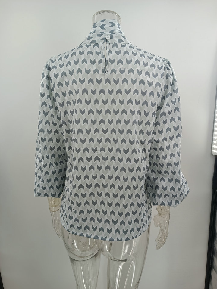 0 Review for Pullover Long Sleeve Stand Collar Printed Loose Blouse
