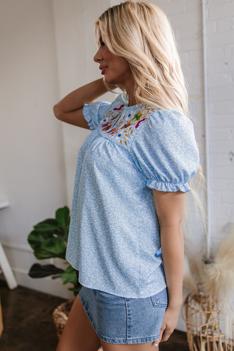 0 Review for Pullover V-neck Chiffon Shirt Embroidered Short Sleeve