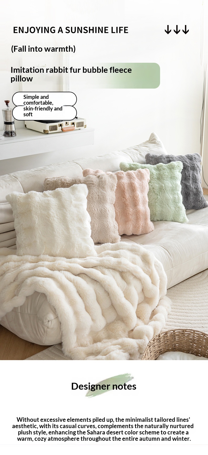 Rabbit Fur Bubble Fleece Throw Pillow In Solid Colors For FallWinter