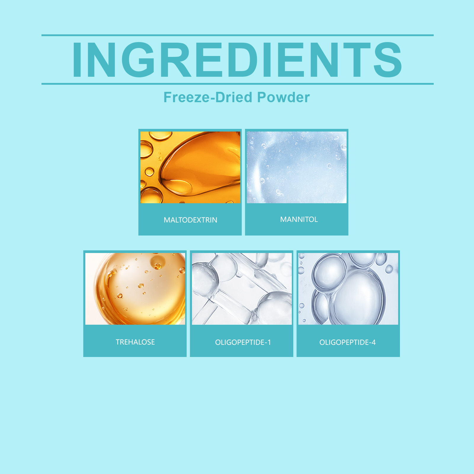 Lyophilized powder: Maltodextrin, Mannitol, Trehalose, Oligopeptide-1, Oligopeptide-4