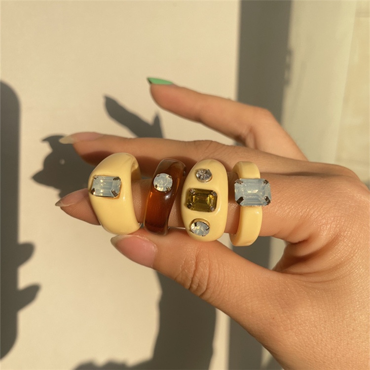 0 Review for Resin Diamond Color Ring Beige Blue Female