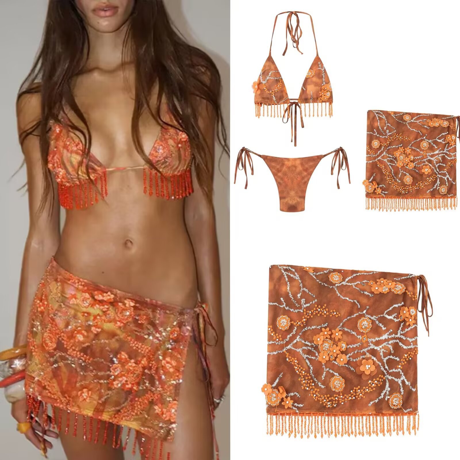 0 Review for Resort-Style Bikini Tassel Skirt Set For Women