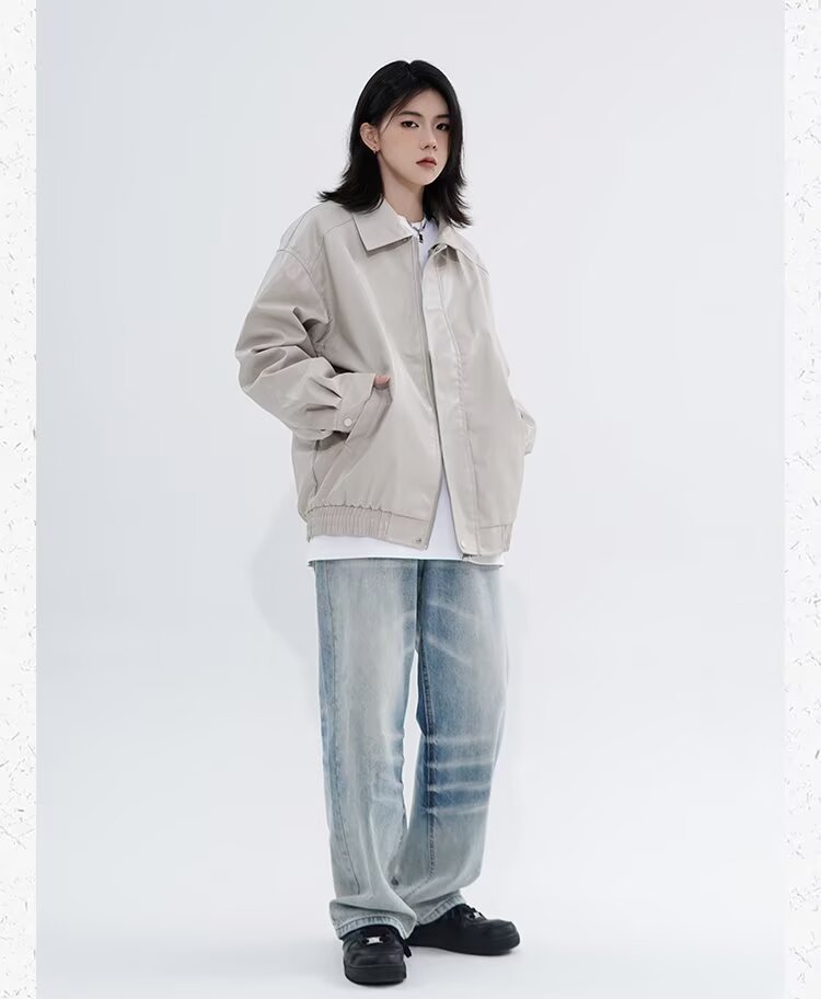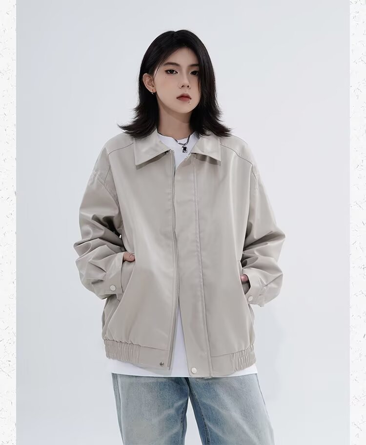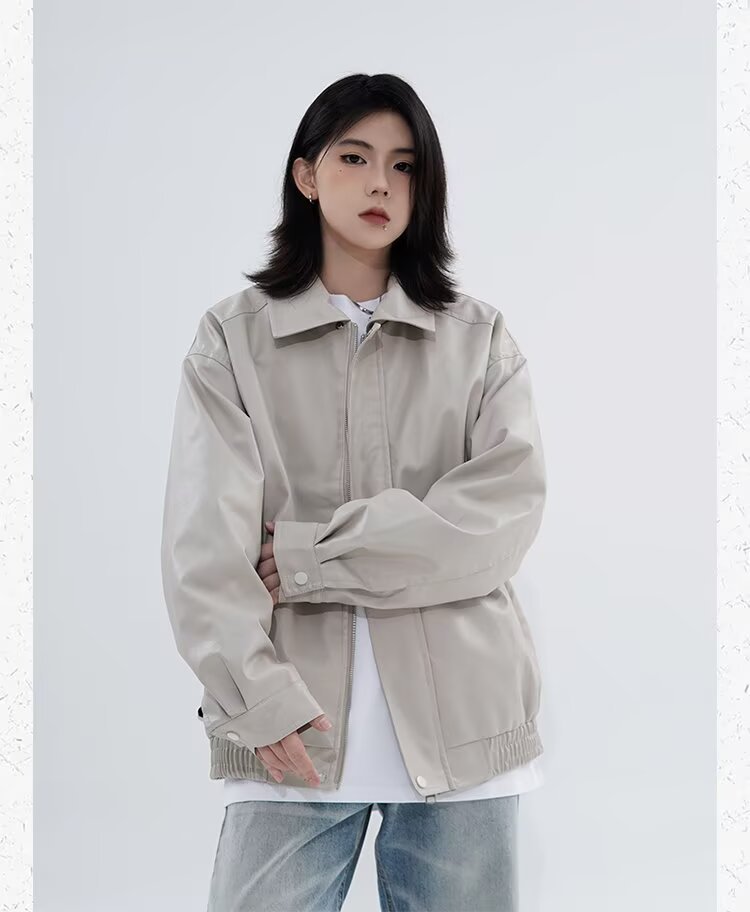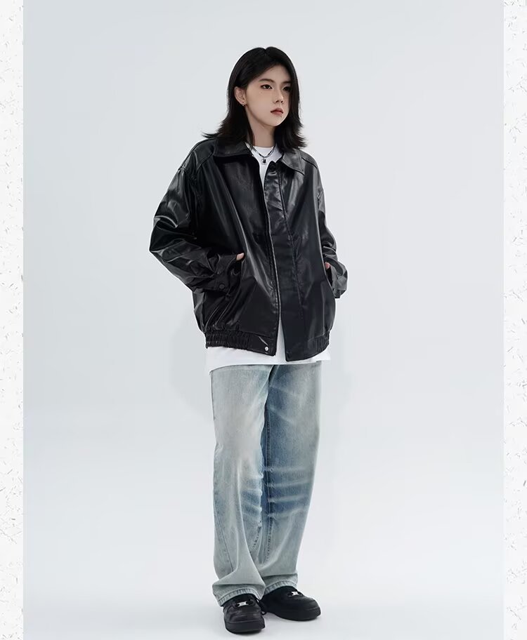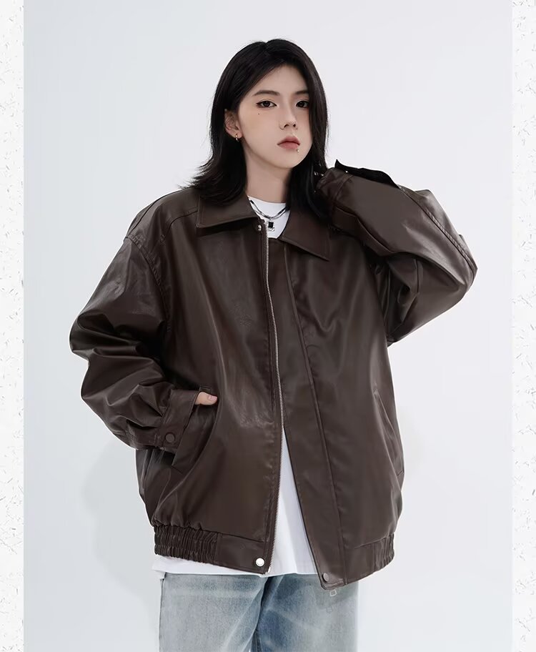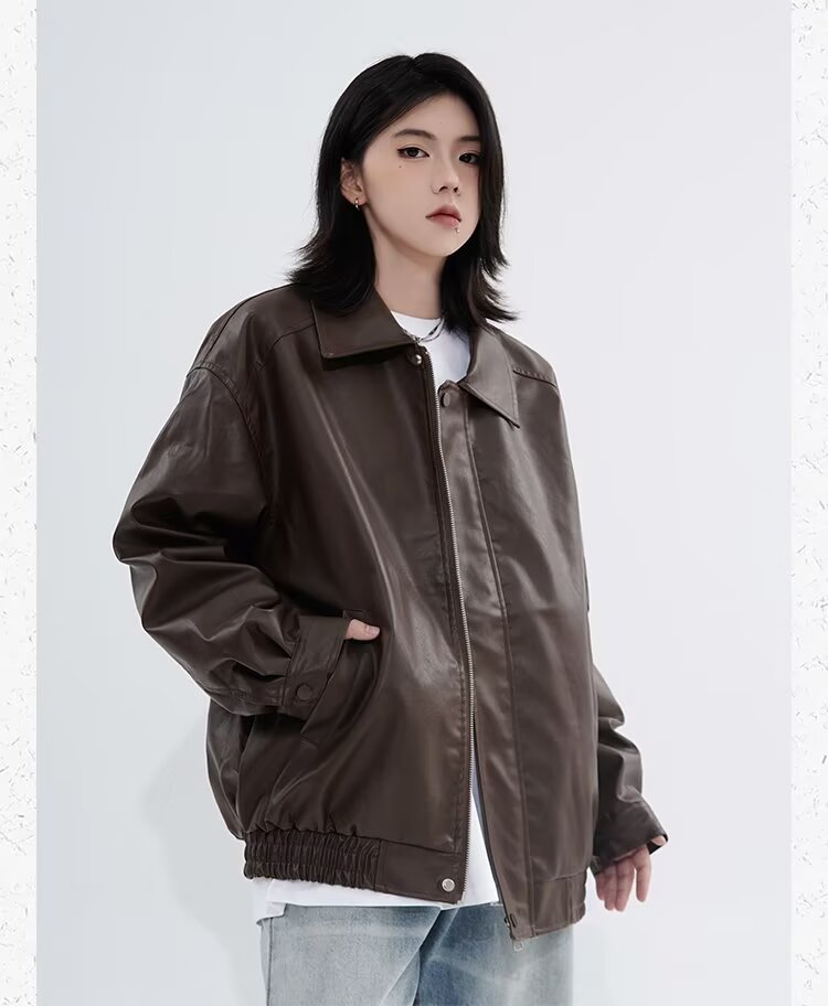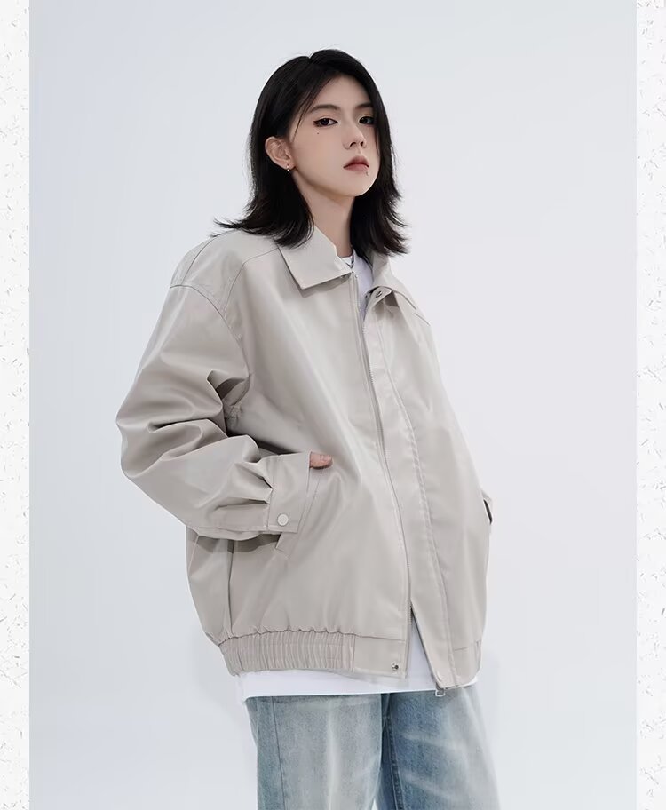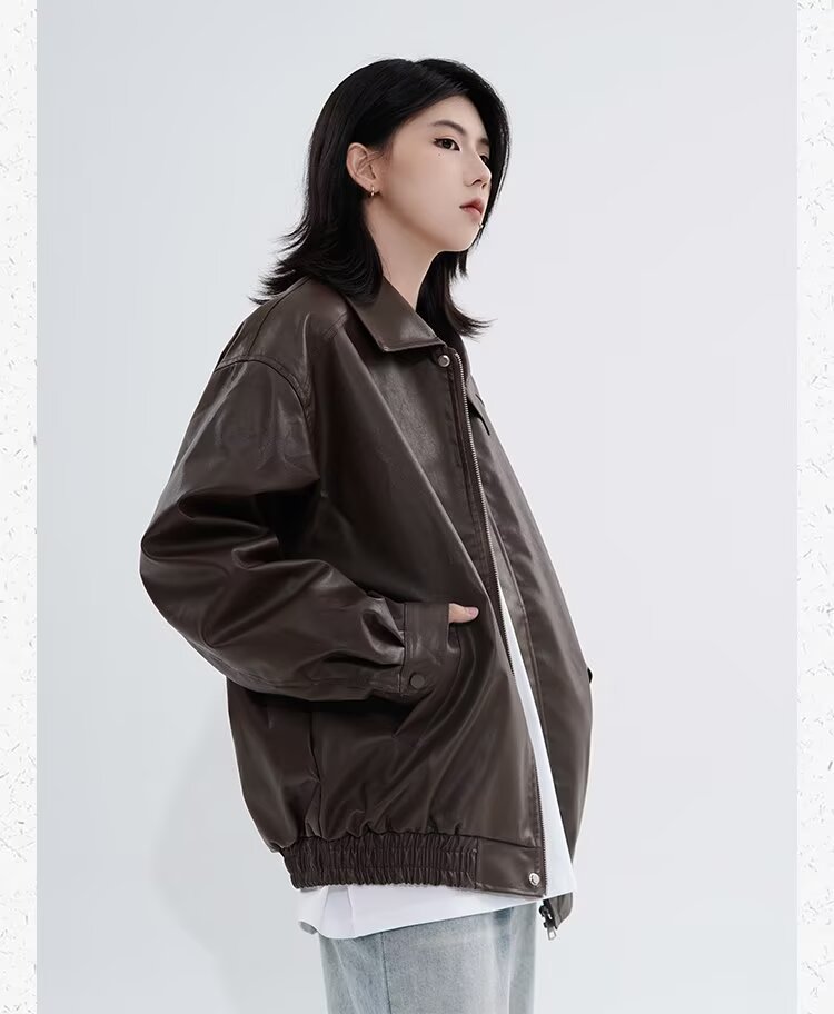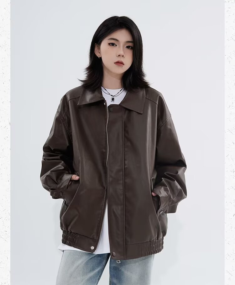 0 Review for Retro Casual Loose Leather Jacket For Spring And Autumn