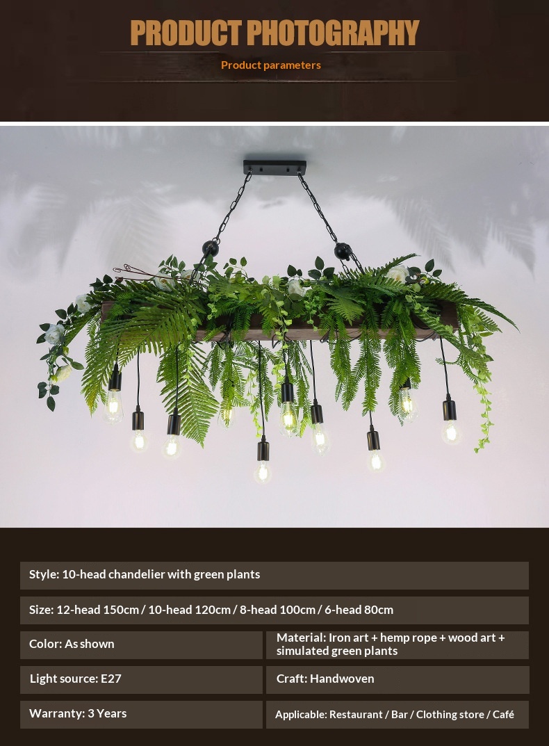 Lighting color options: 80 cm with 6 light fixtures (no greenery), 100 cm with 8 light fixtures (no greenery), 120 cm with 10 light fixtures (no greenery), 150 cm with 12 light fixtures (no greenery), 100 cm in a jute rope style, 100 cm with a light fixture and wire design, 120 cm with a light fixture design, 120 cm with spotlight design, 180 cm