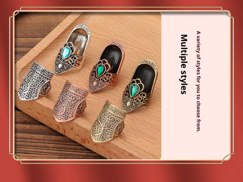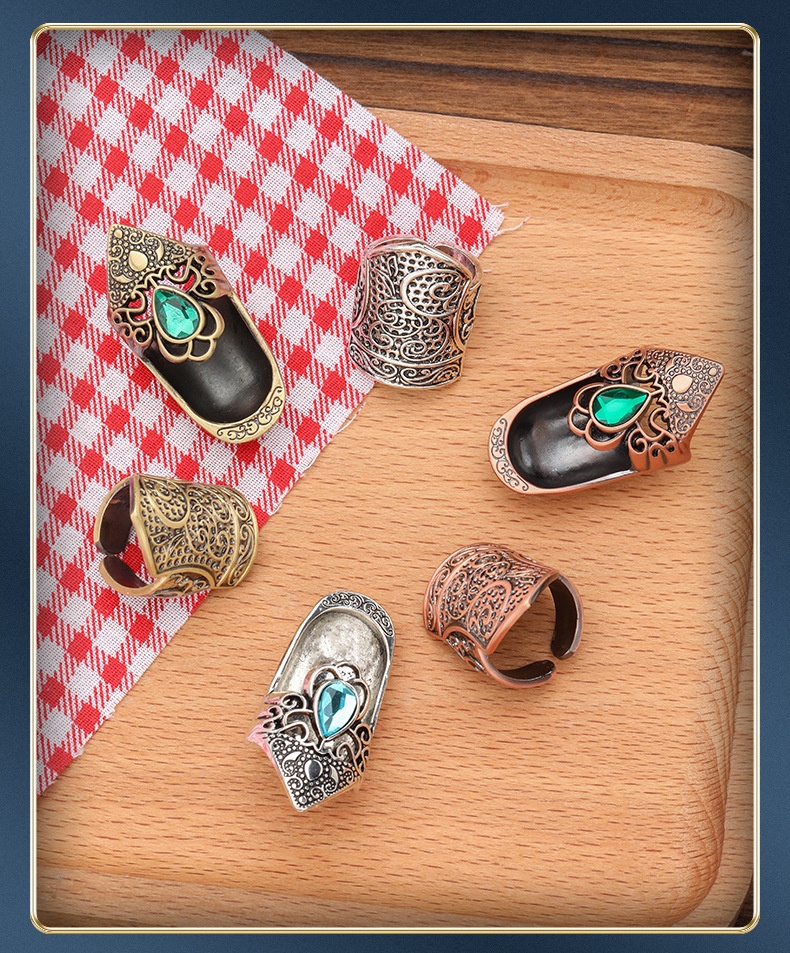 0 Review for Retro European-style Diamond-embedded Flower Ring Shield