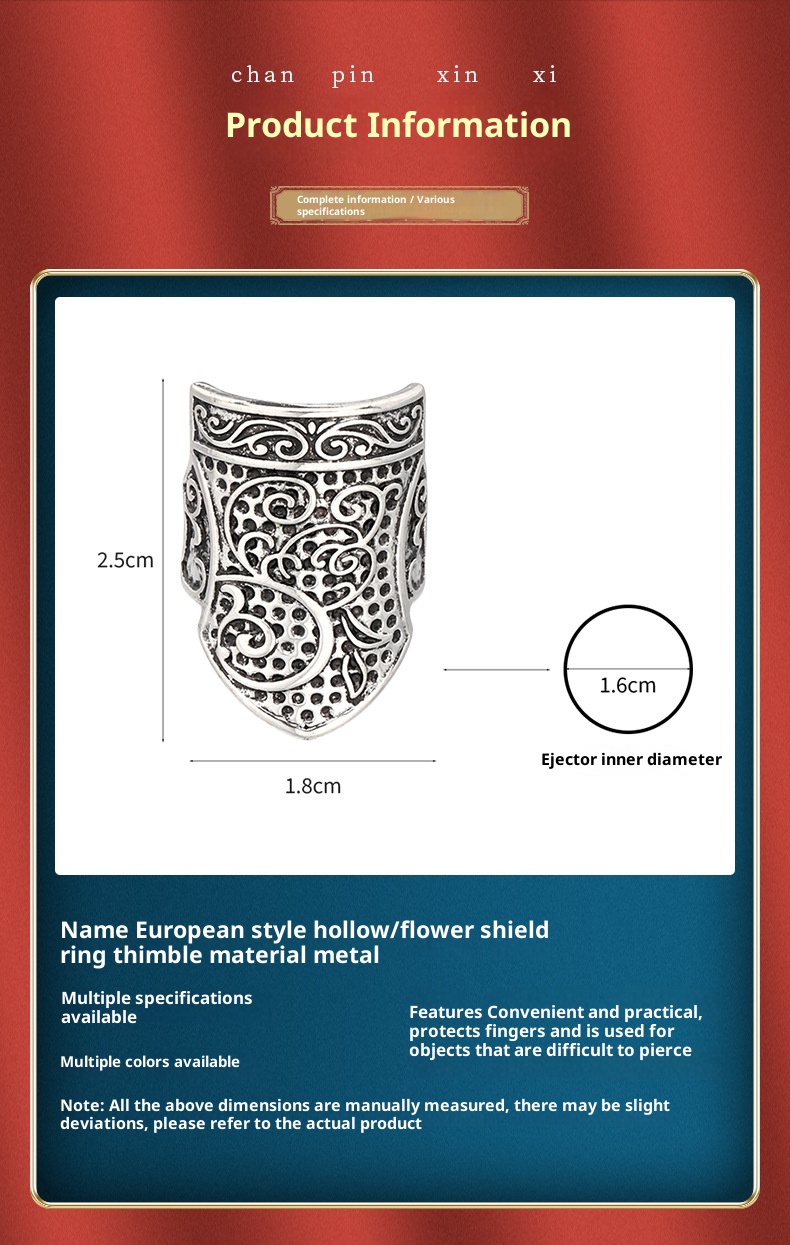 Color: European court Garland thimble-silver copper, European court Garland thimble-red bronze, European court Garland thimble-bronze, European flower shield ring thimble-red bronze, European flower shield ring thimble-bronze, european-style flower shield ring thimble-silver copper