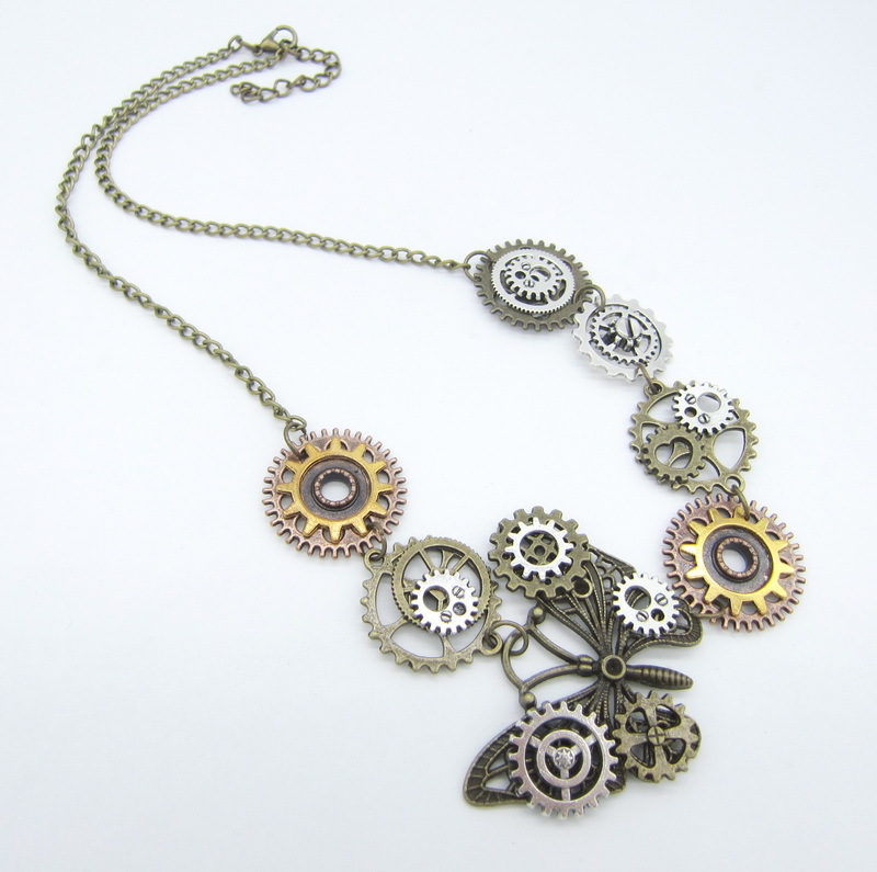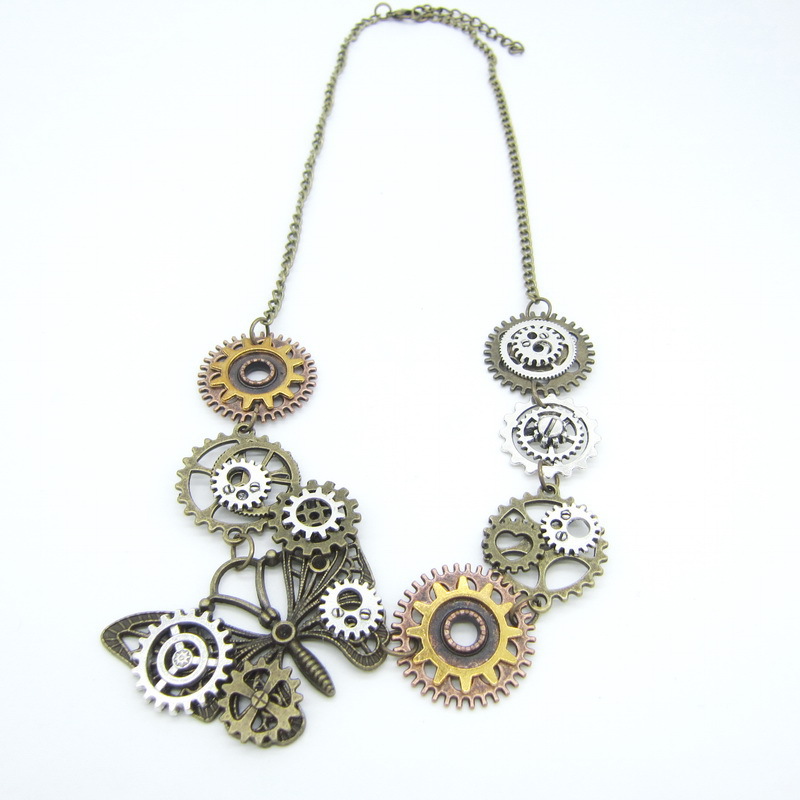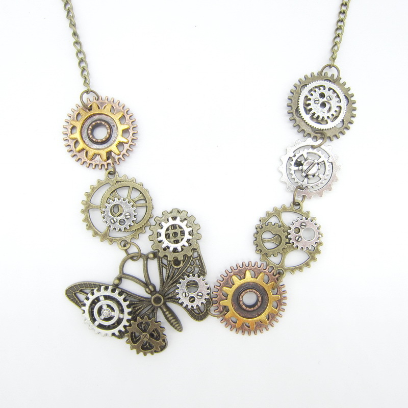 0 Review for Retro Punk Color-Blocked Gear And Butterfly Pendant Necklace