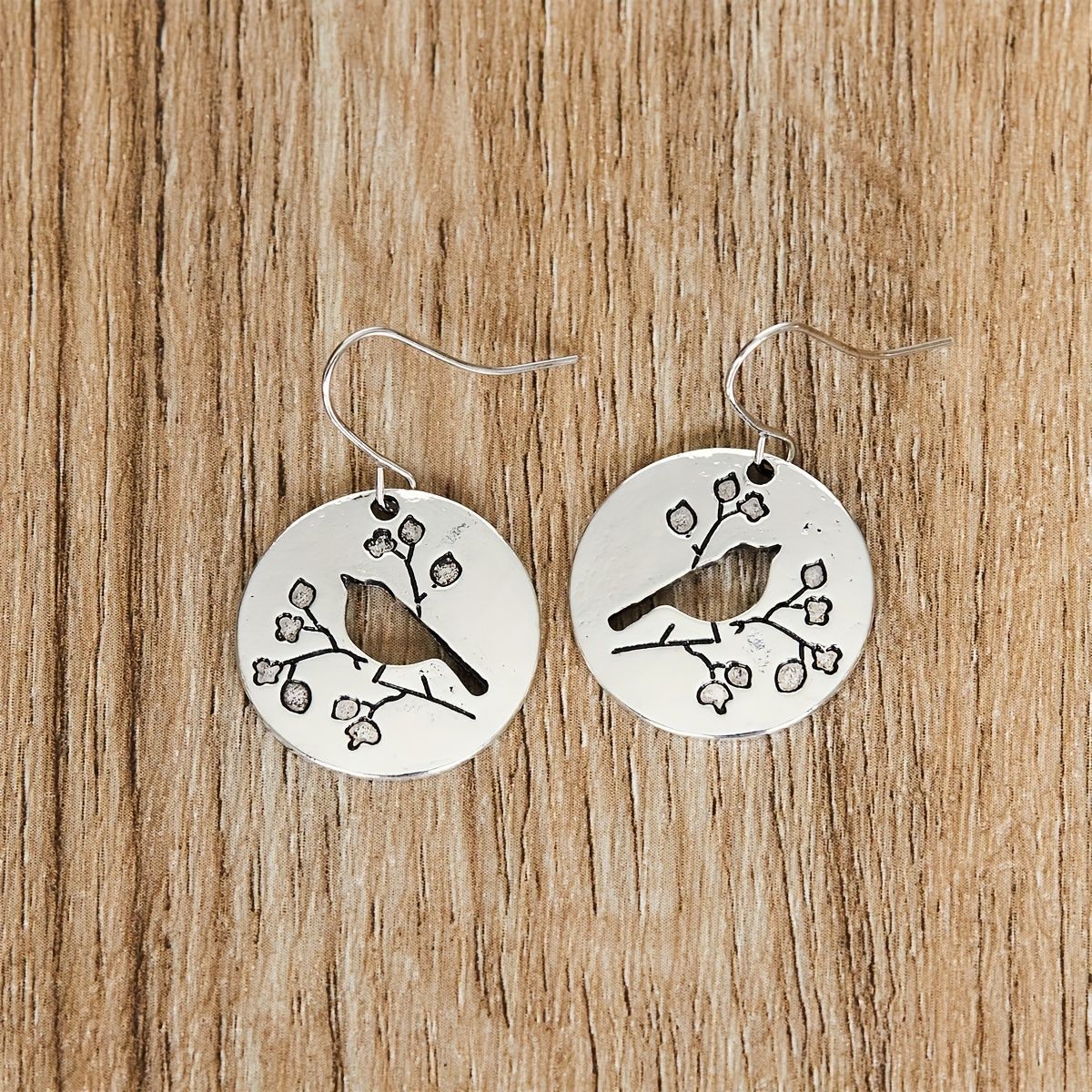 0 Review for Retro Round Flower And Bird Pendant Earrings For Women