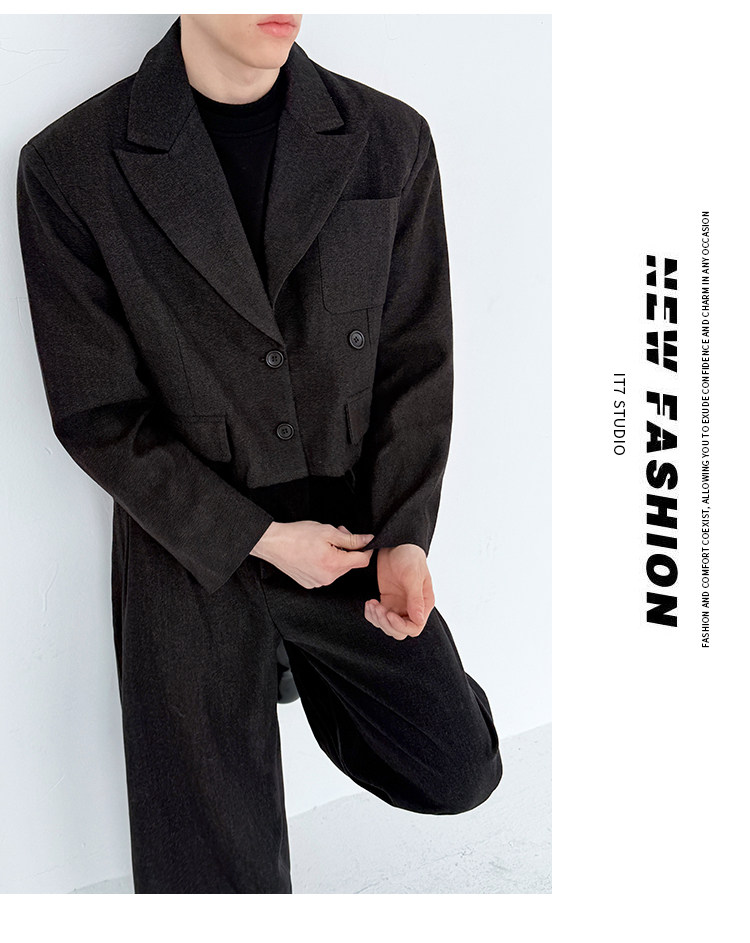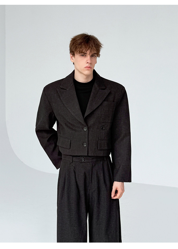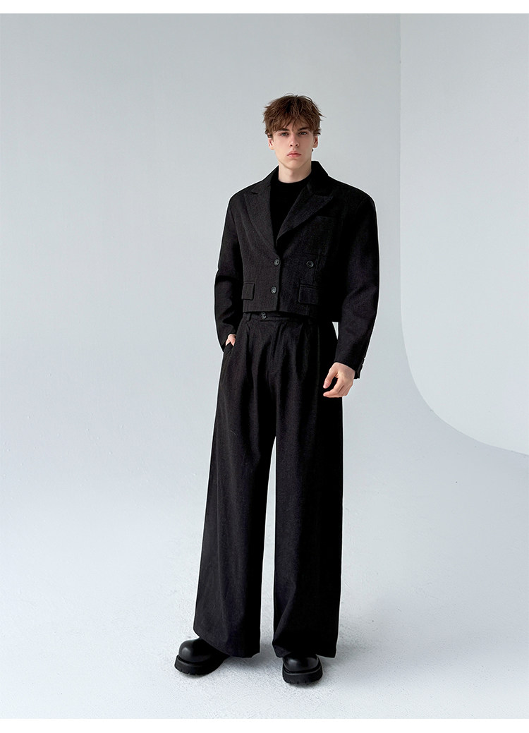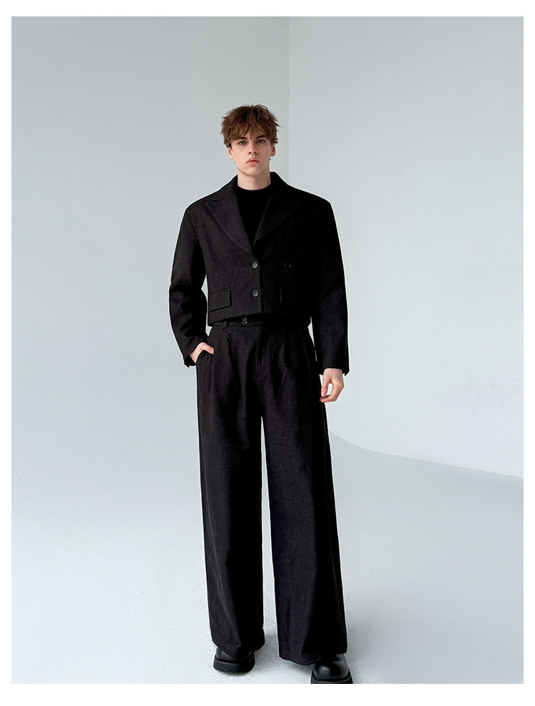 0 Review for Retro-style Thickened Short Casual Suit With Wide-leg Pants
