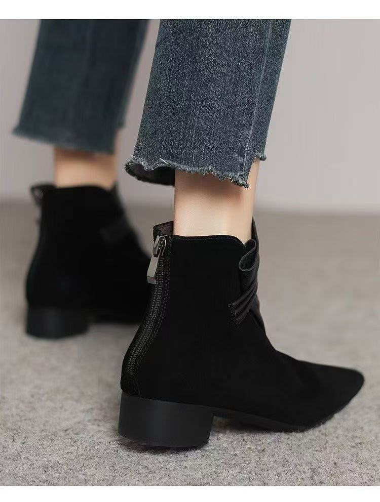 0 Review for Retro Suede Pointed Toe Chunky Heel Ankle Boots