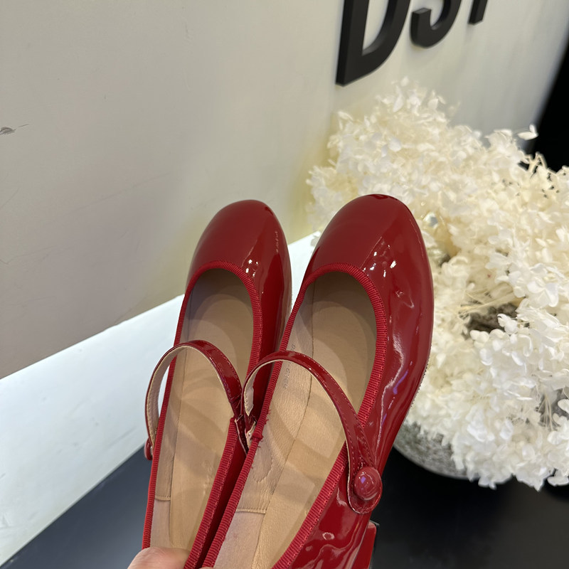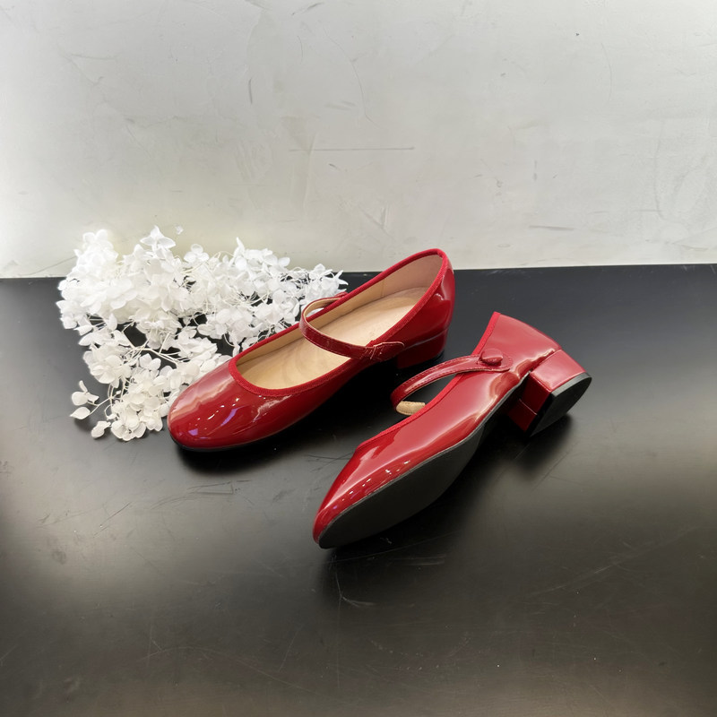 0 Review for Round-toe Strap-detail Red Chunky-heel Mary Jane Shoes