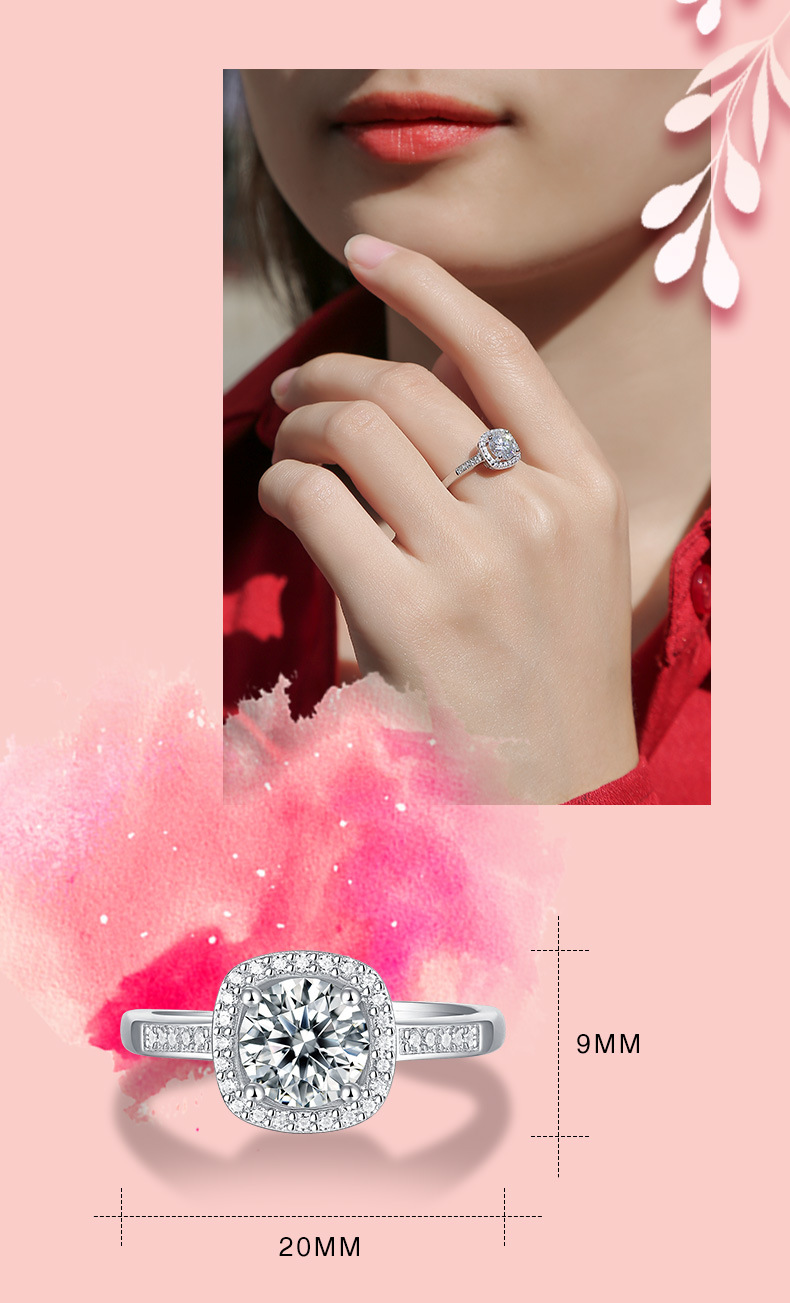 0 Review for S925 Silver Ring Square Surrounding Ring Set With Moissanite