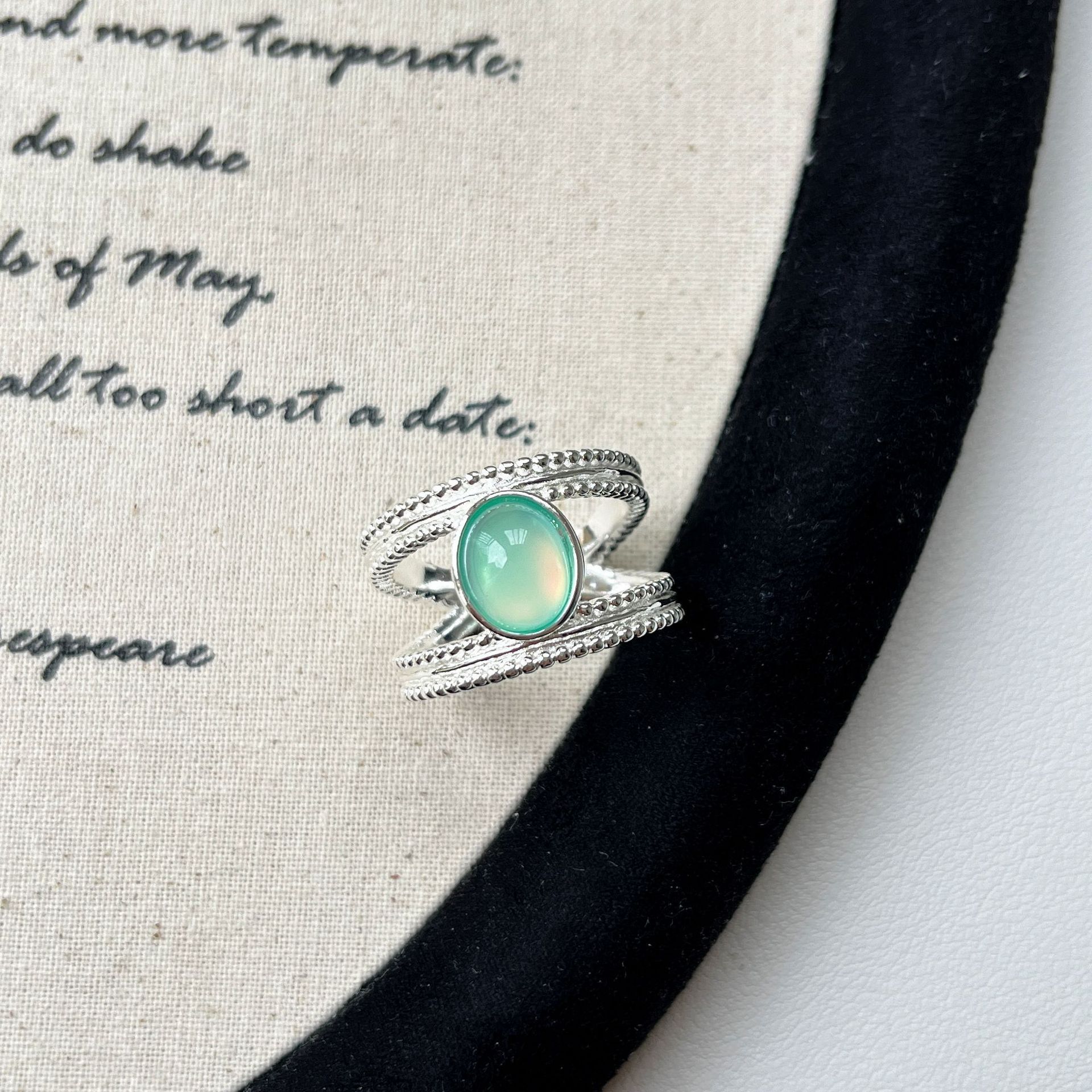 0 Review for S925 Sterling Silver Retro Green Double-Strand Ring For Women Open-End Adjustable