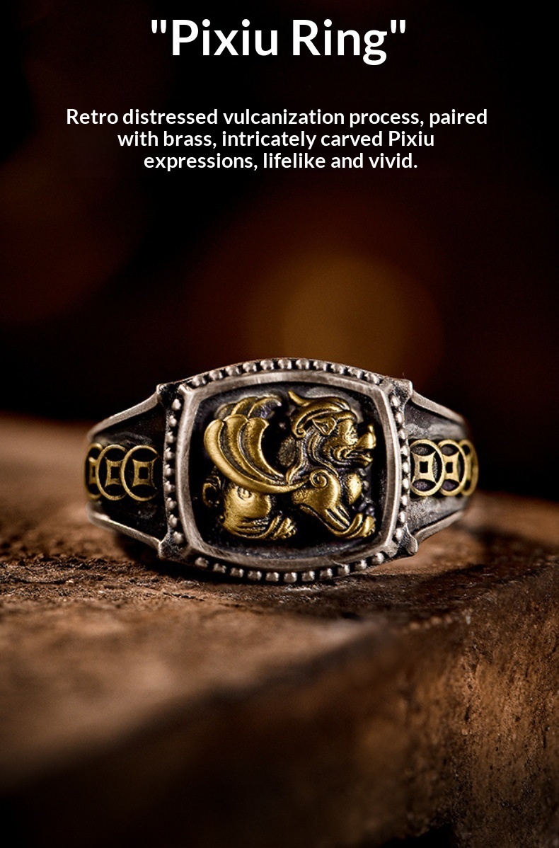 0 Review for S925 Thai Silver Pi Xiu Ring For Men Vintage Style