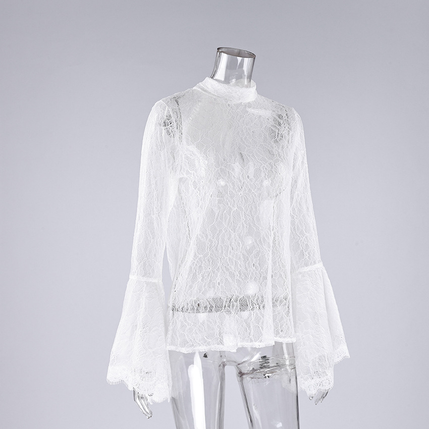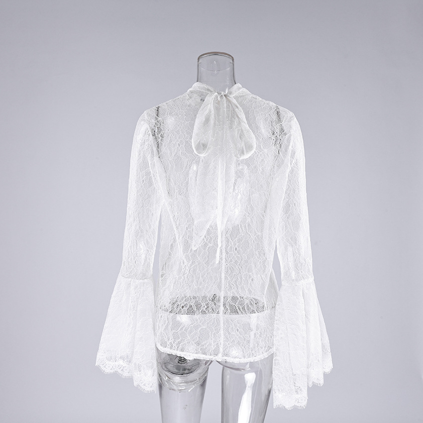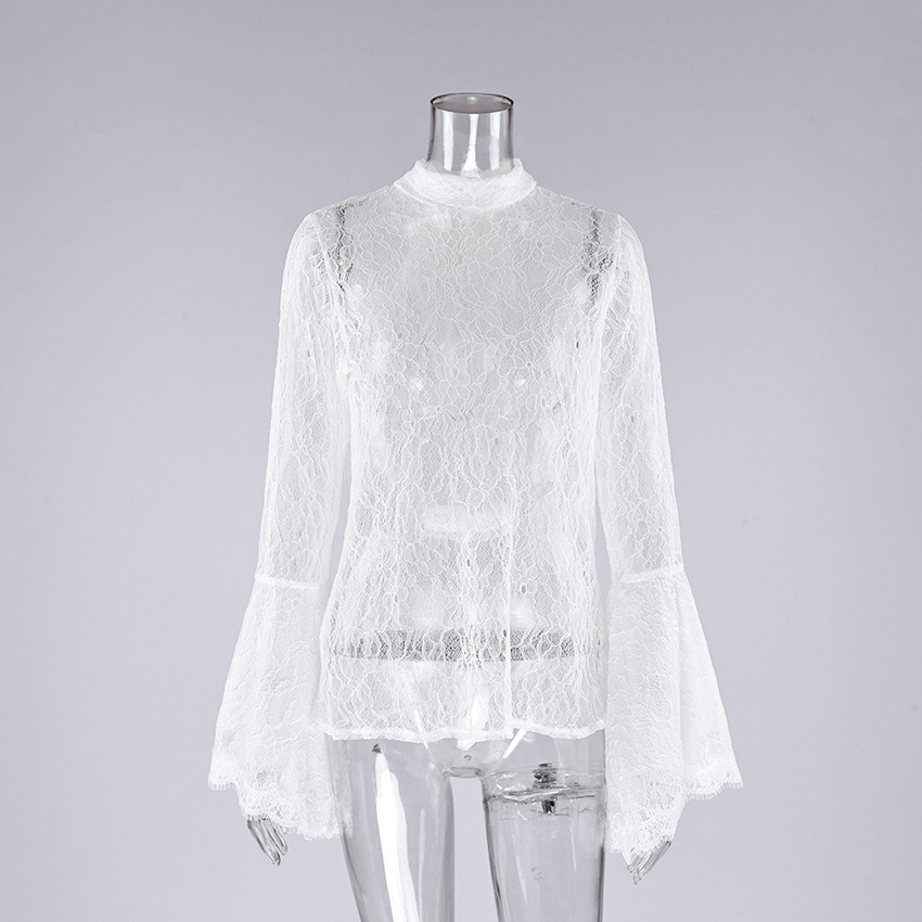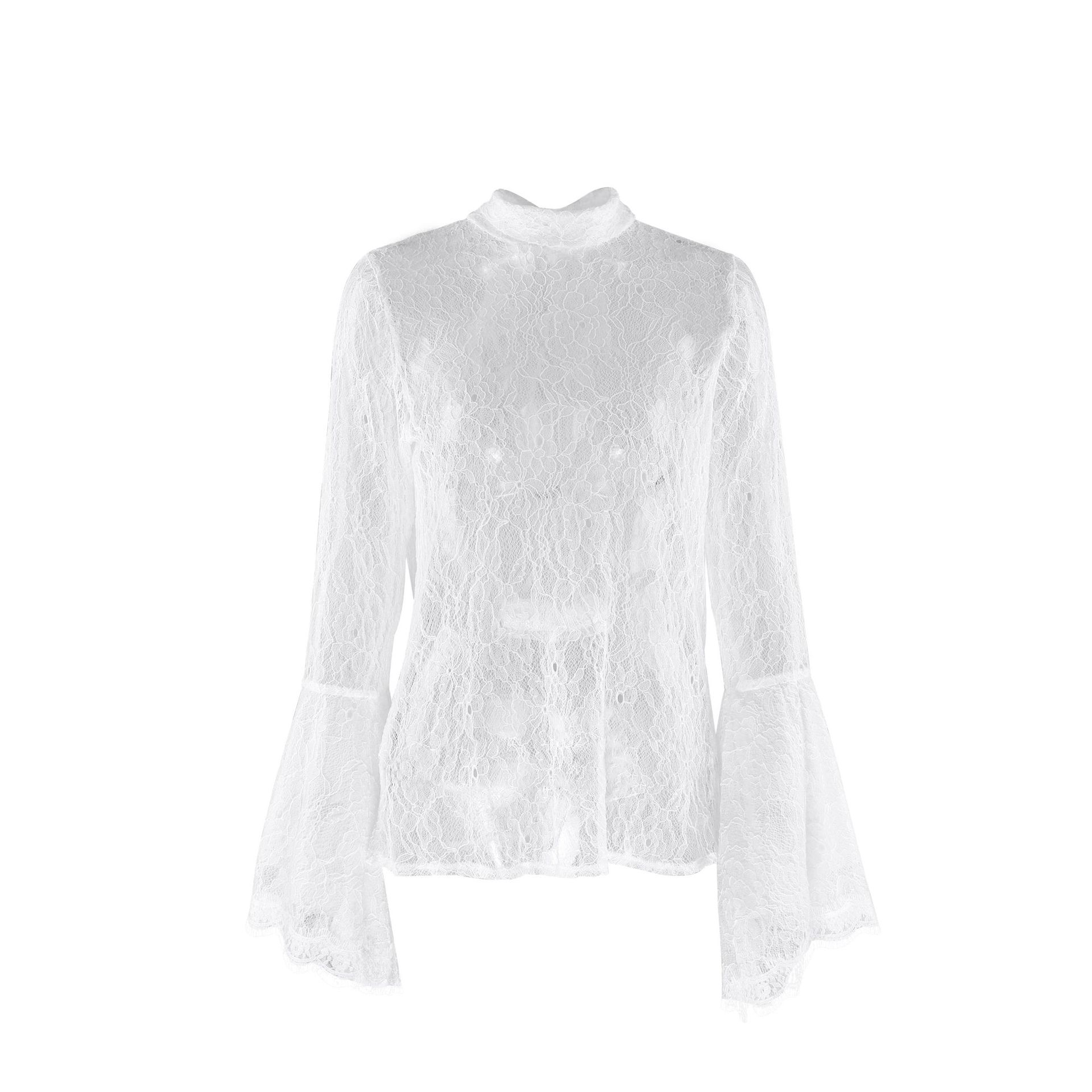 0 Review for Sexy Lace Ruffle-sleeve Flowy-neckline Blouse