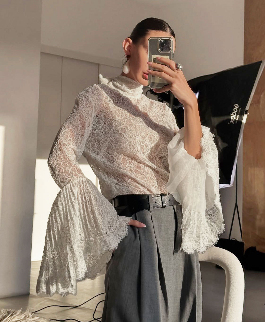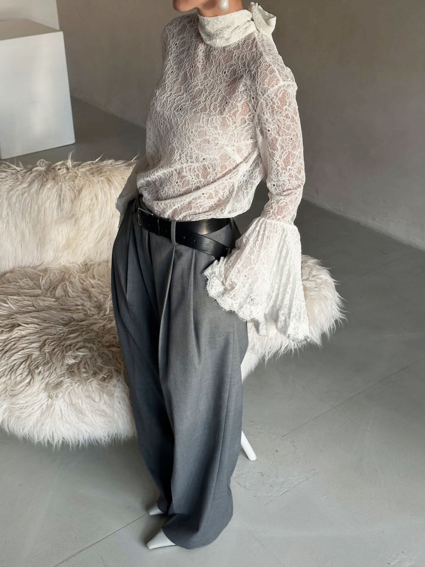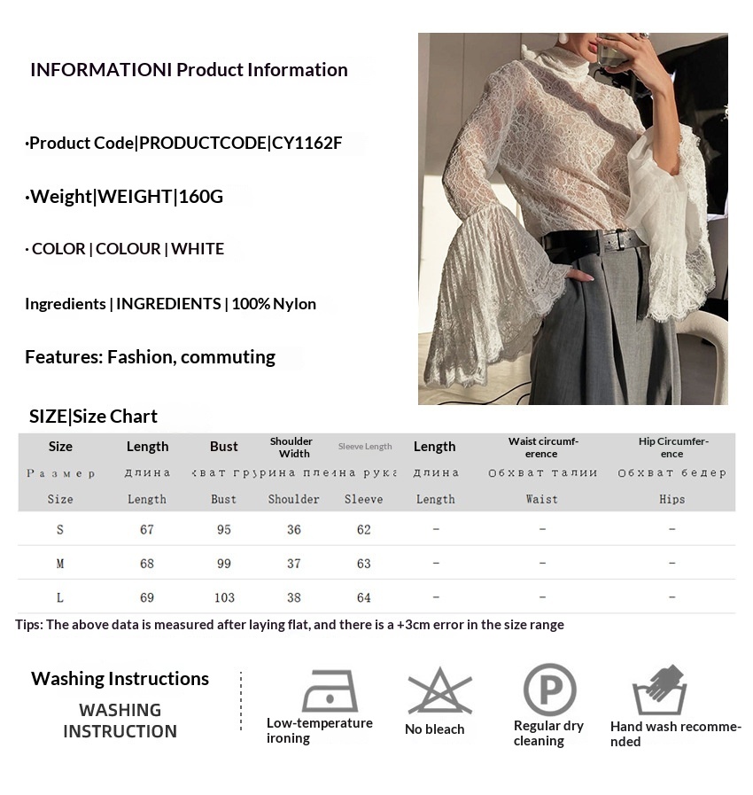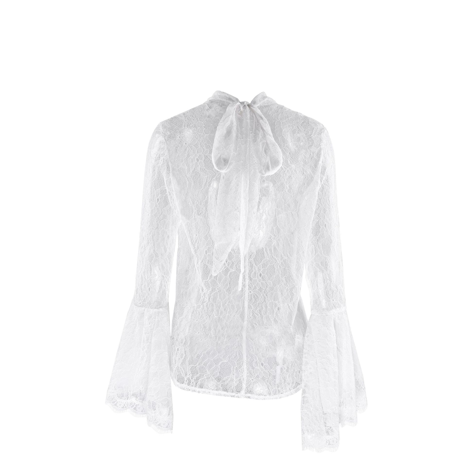 0 Review for Sexy Lace Ruffle-sleeve Flowy-neckline Blouse