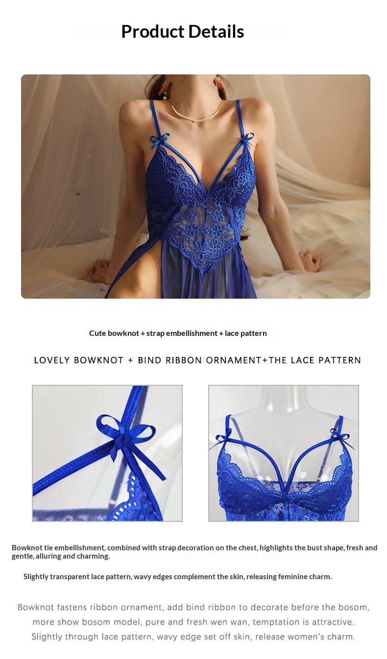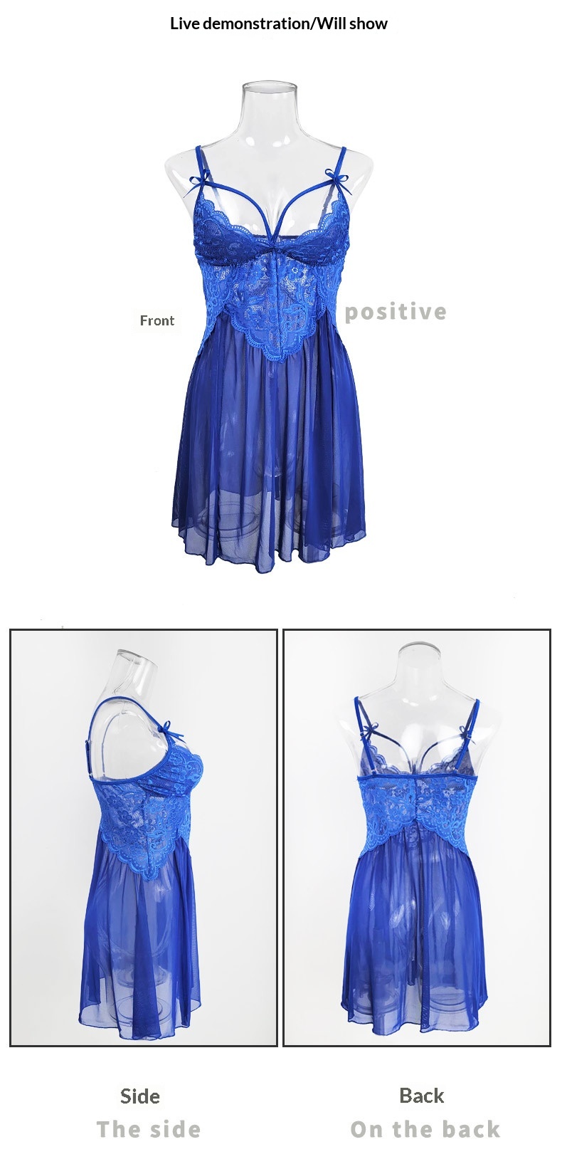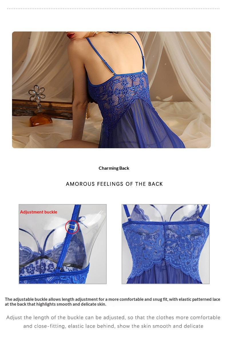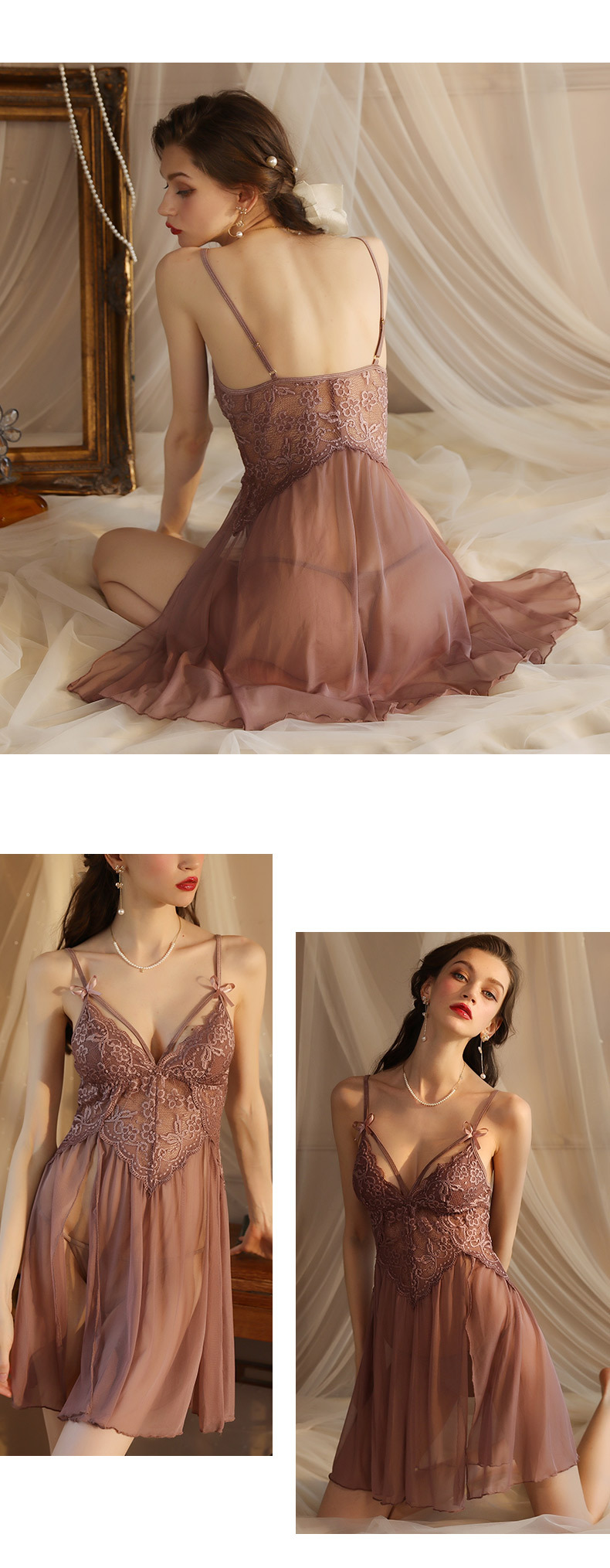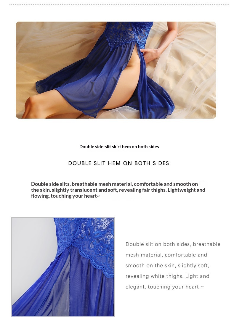 0 Review for Sexy Mesh Deep-V Lace Nightgown With Side Slits And A Slip Dress