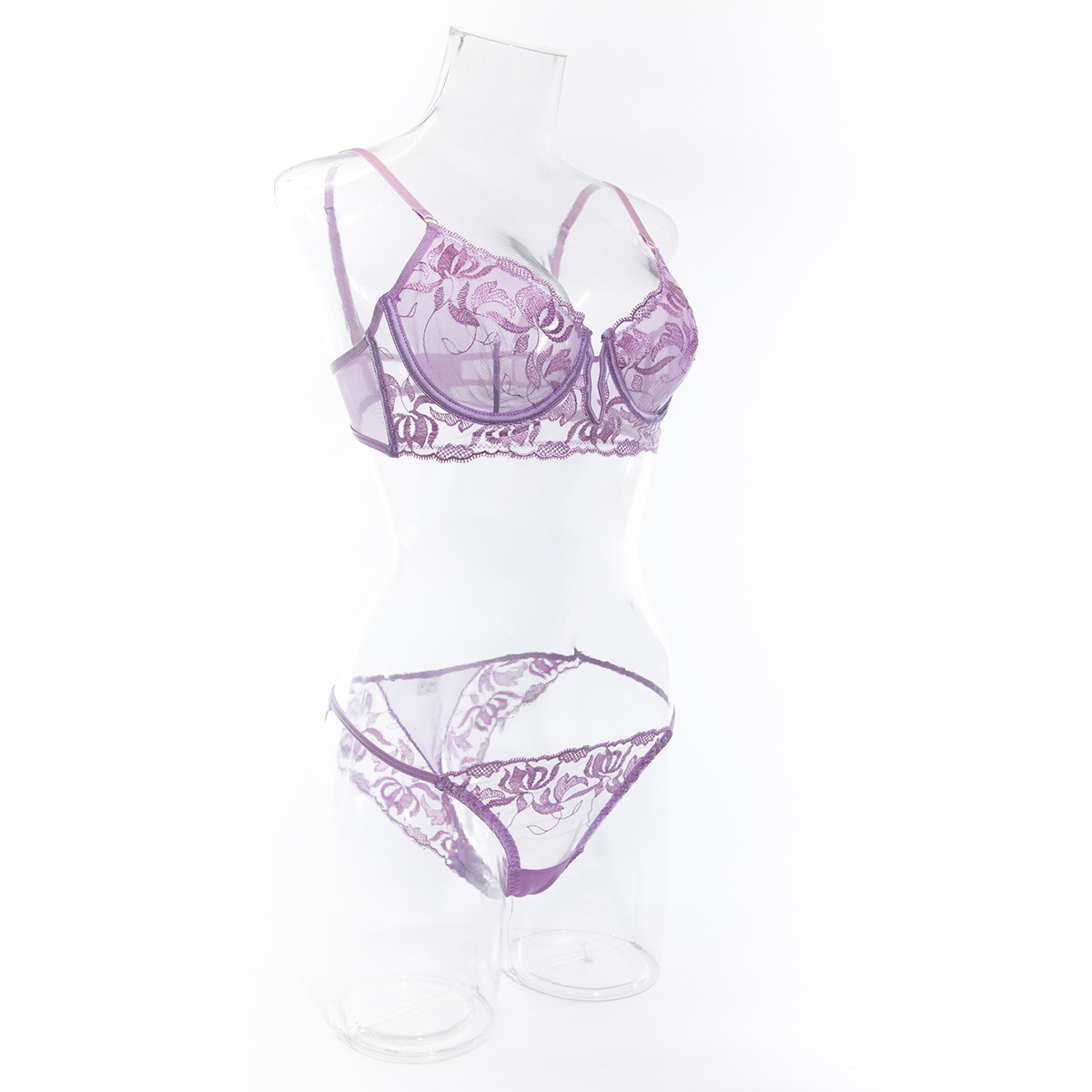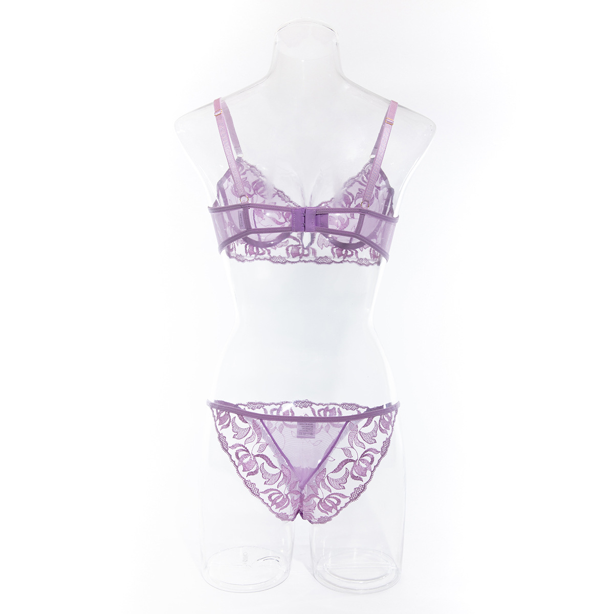 0 Review for Sexy Mesh Embroidery Bra And Thong Two-Piece Set