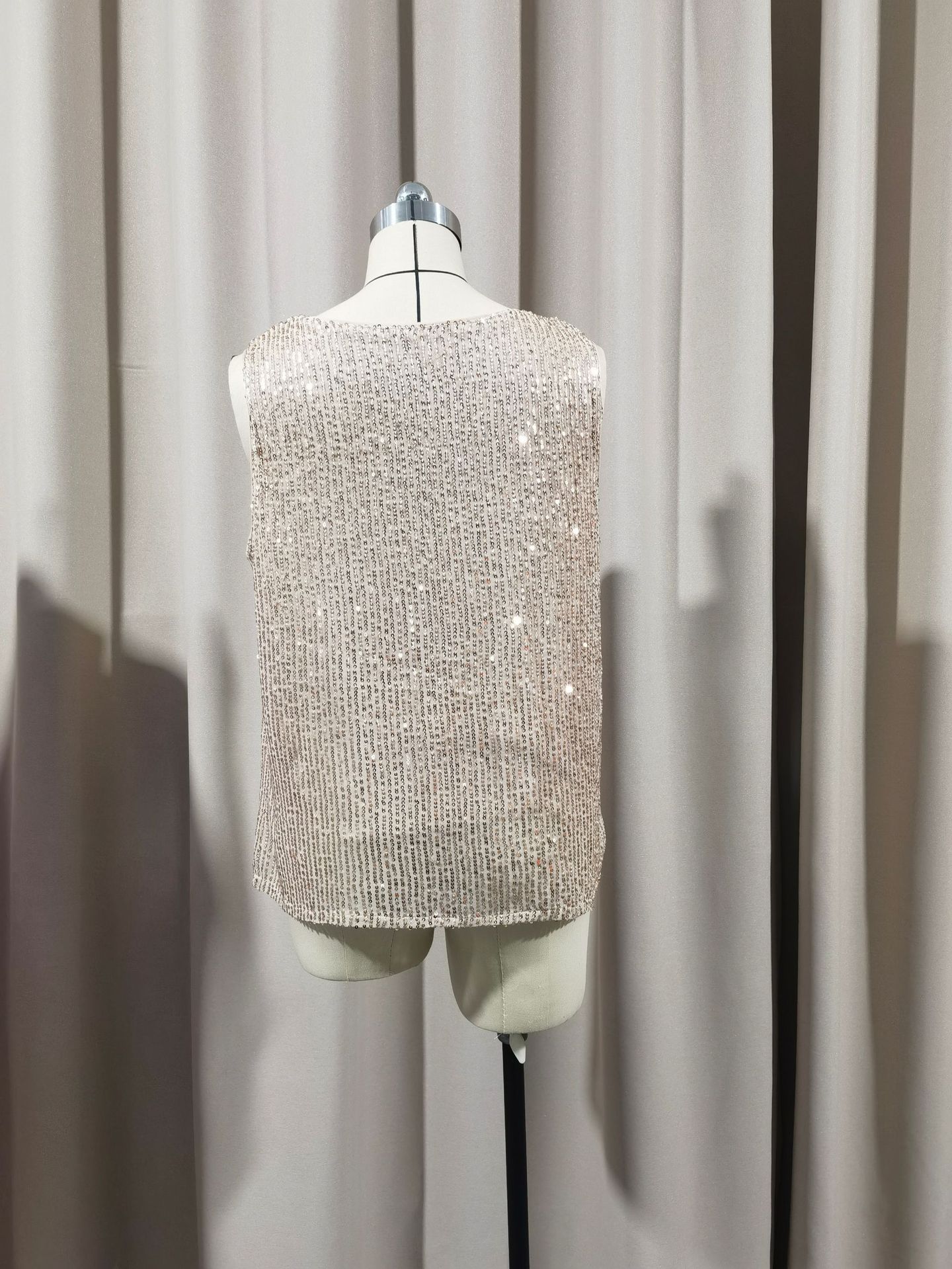 0 Review for Sexy V-neck Strapless Loose-fit Sequin Tank Top