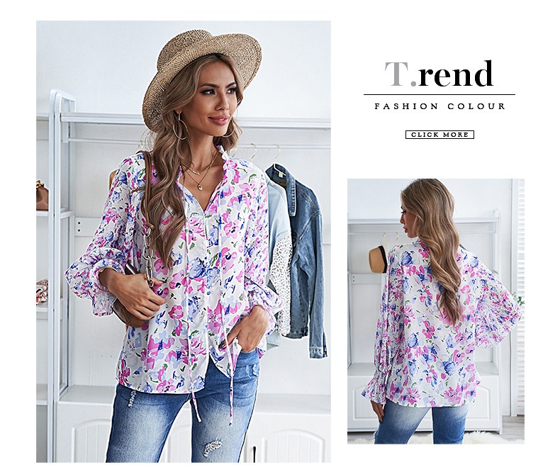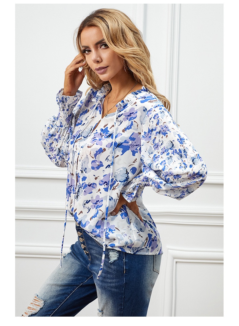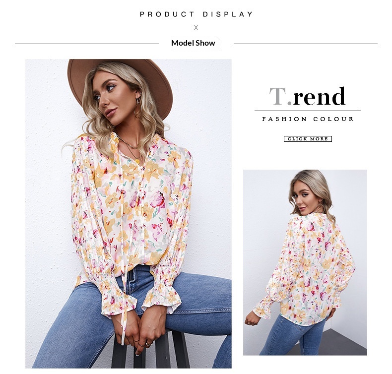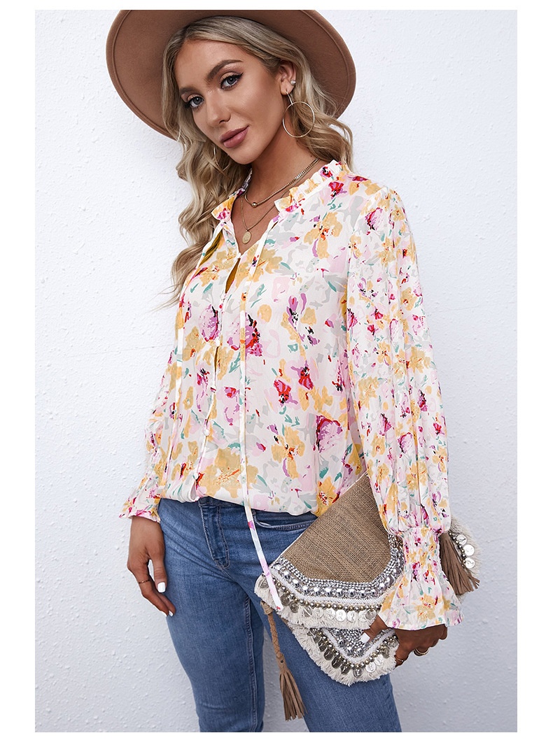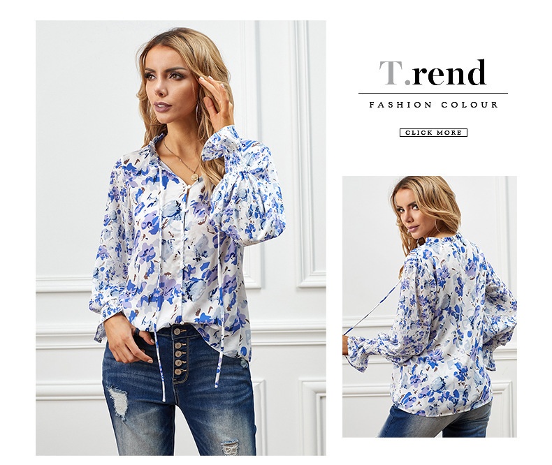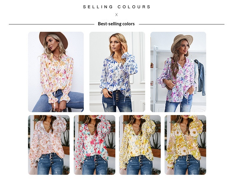 0 Review for Shiying Autumn Lightweight Floral Chiffon Blouse With Long Sleeves