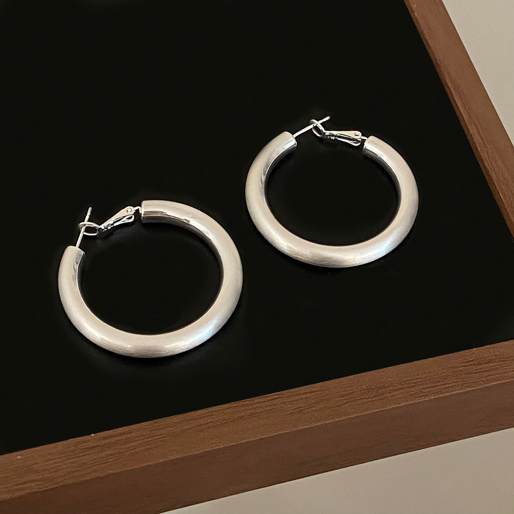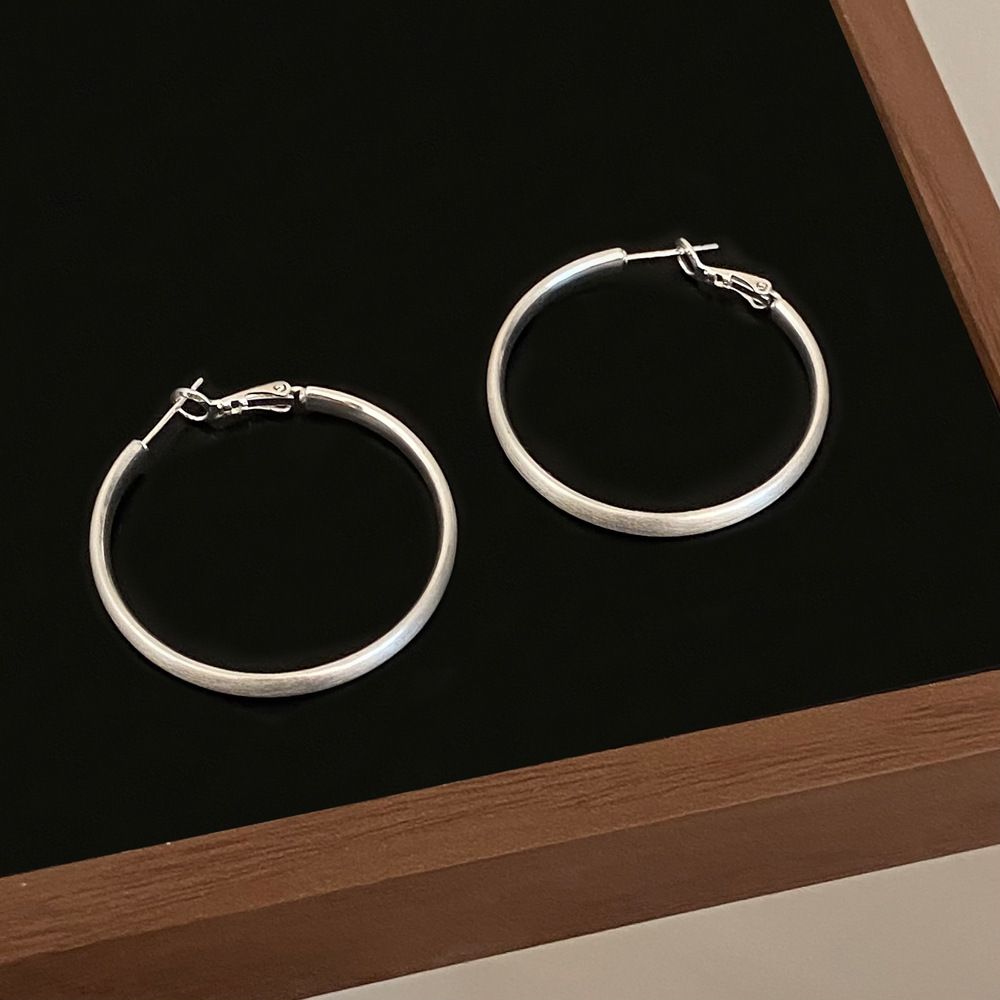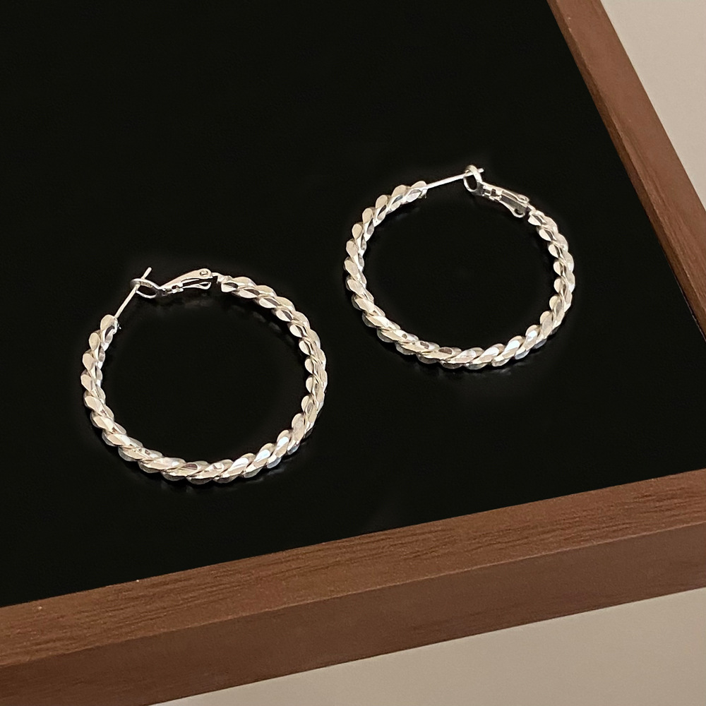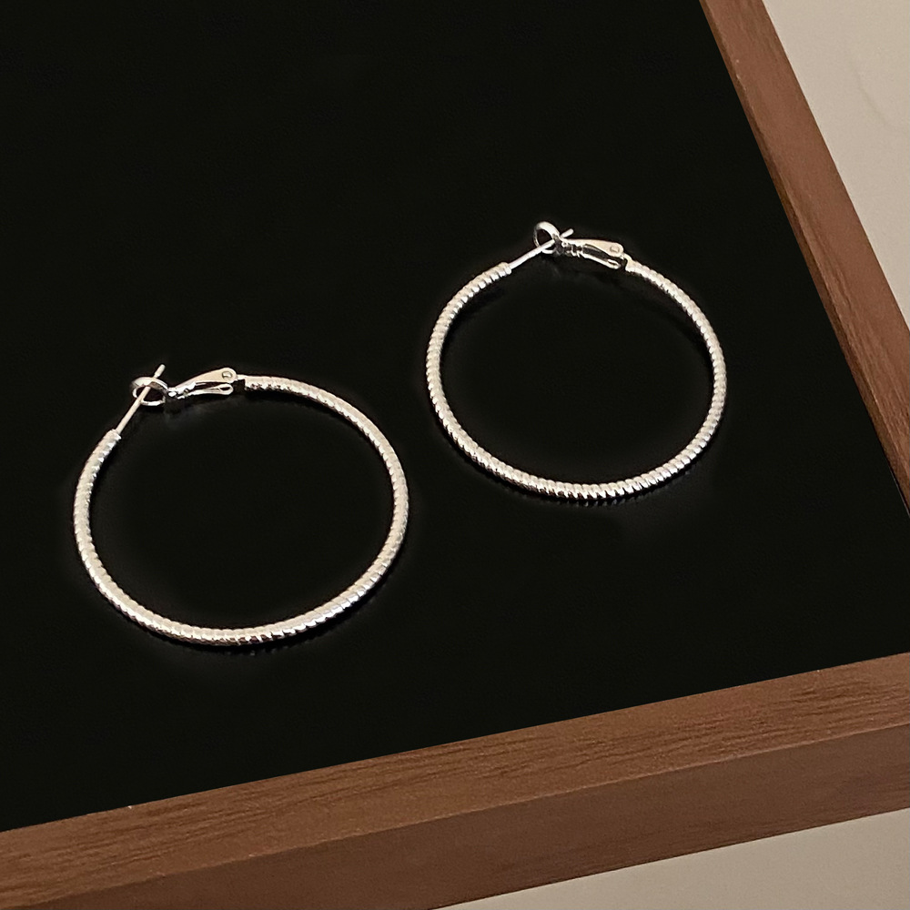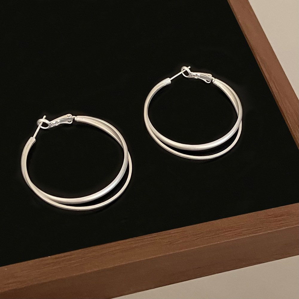 0 Review for Silver Cold Wind Spiral Double Layer Large Earrings