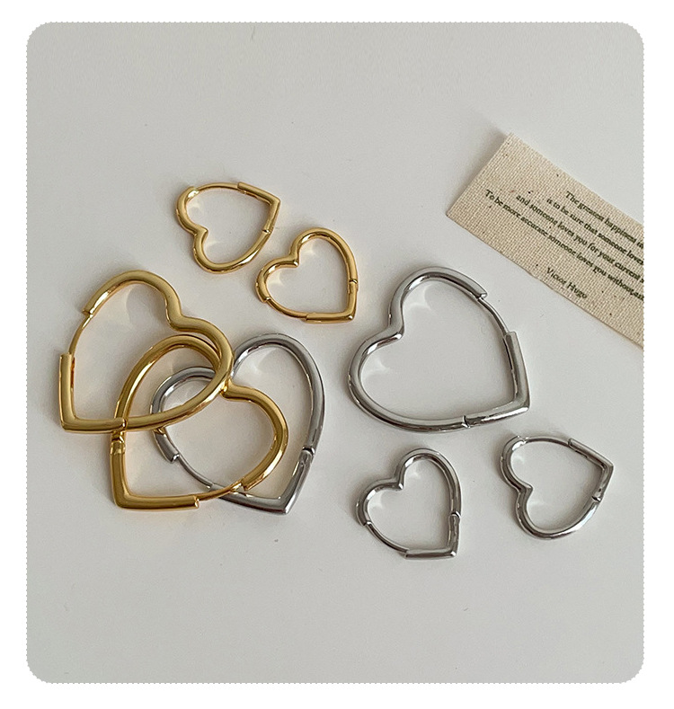 Colors: Large silver heart ear clips, large gold heart ear clips, small silver heart ear clips, small gold heart ear clips