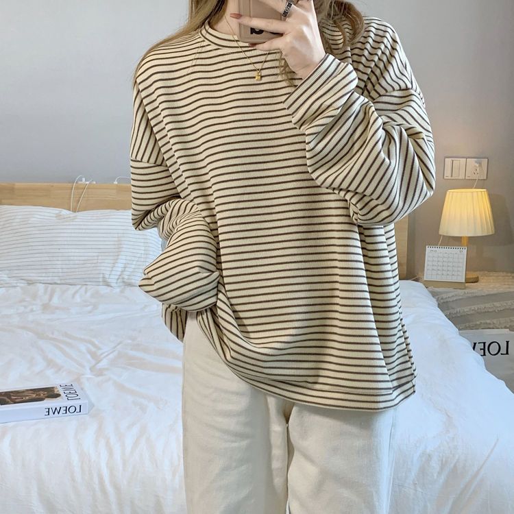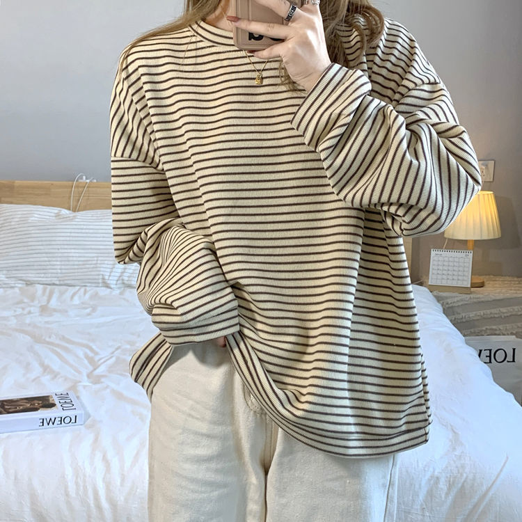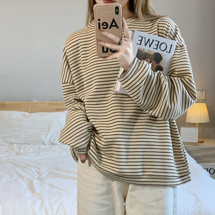 0 Review for Simple Women's Striped Crewneck Sweatshirt